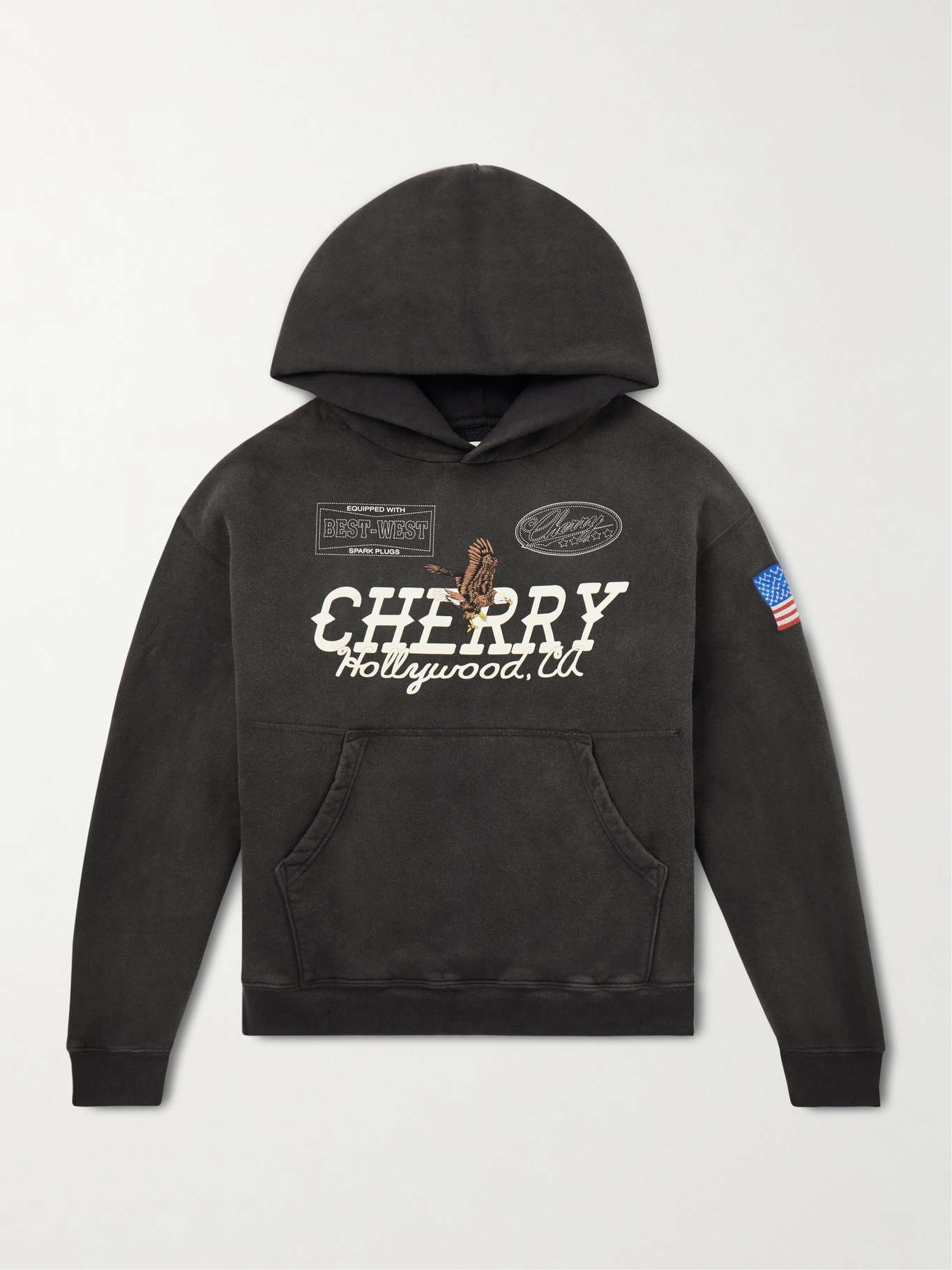 CHERRY LOS ANGELES Hollywood Logo-Print Embroidered Cotton-Jersey Hoodie