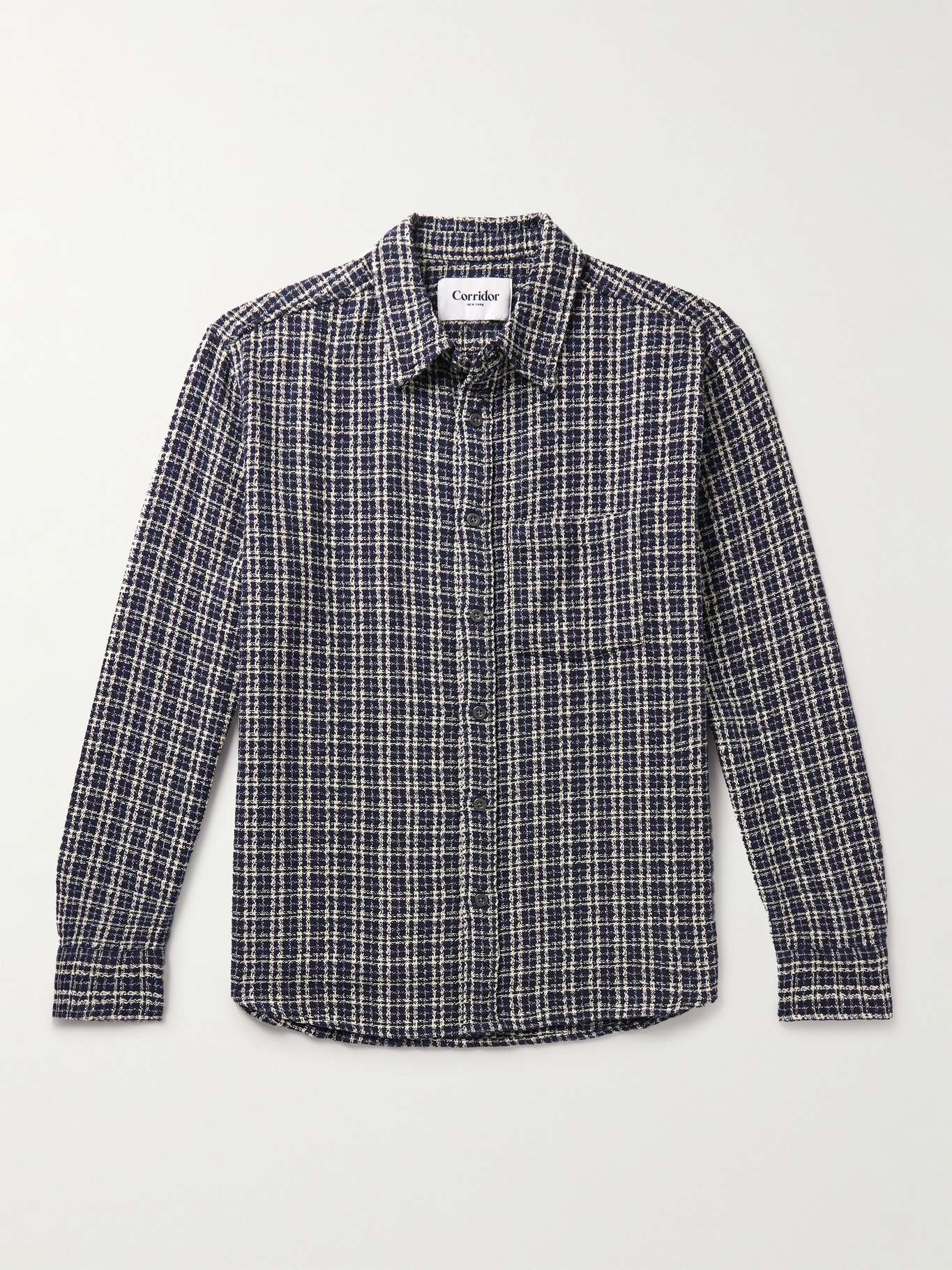Corridor works with specialist mills to design all of its fabrics in-house. Made from tactile cotton-tweed, this shirt is woven with small checks and fastens with polished buttons.
