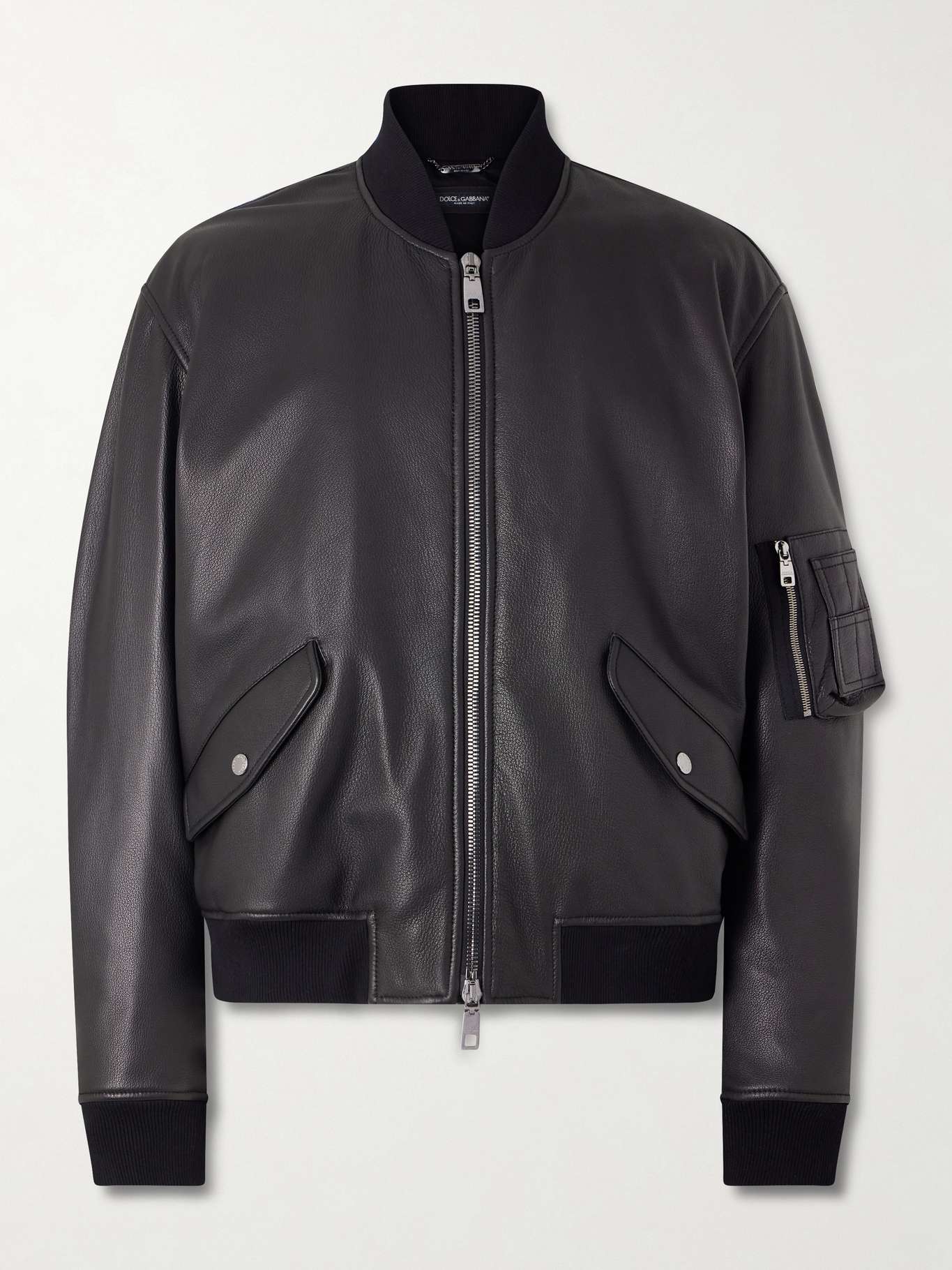 DOLCE&GABBANA Padded Full-Grain Leather Bomber Jacket
