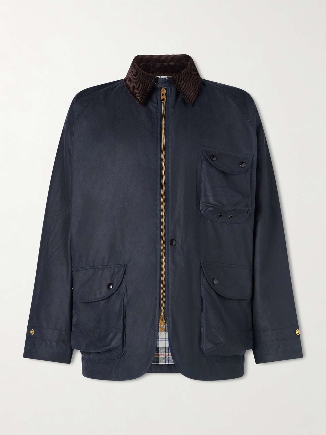 Drake's jacket is reminiscent of vintage outerwear with its corduroy collar and tartan lining. Designed to last, it's been made in Italy from waxed-cotton that's naturally water-repellent and has a trio of pockets for your essentials.