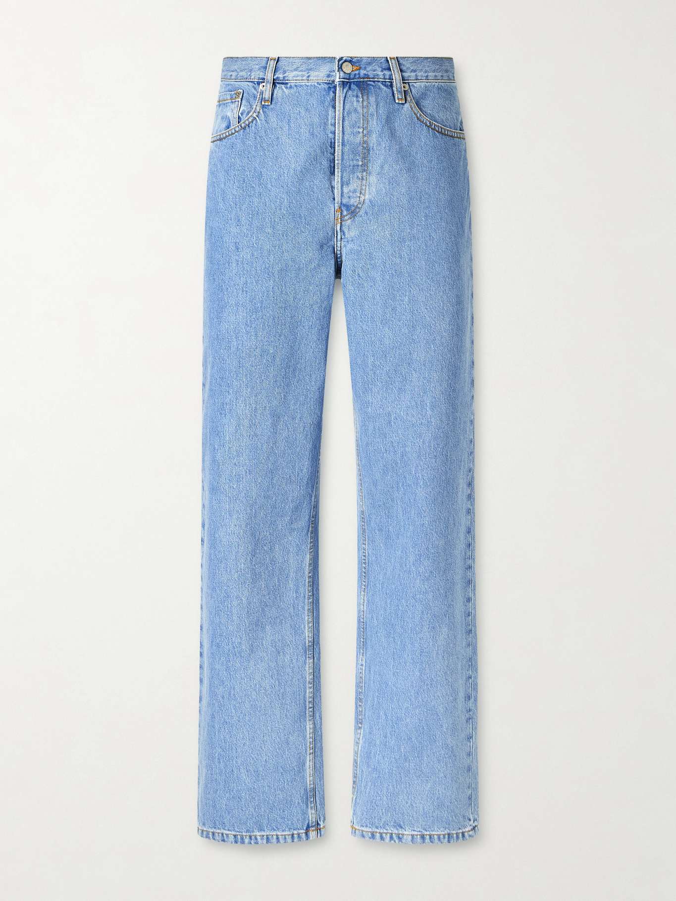 Dries Van Noten's jeans are washed, rinsed and bleached a classic blue. They're made from rigid denim and cut in a classic, five-pocket profile, with silver-tone rivets and camel-tone stitching.