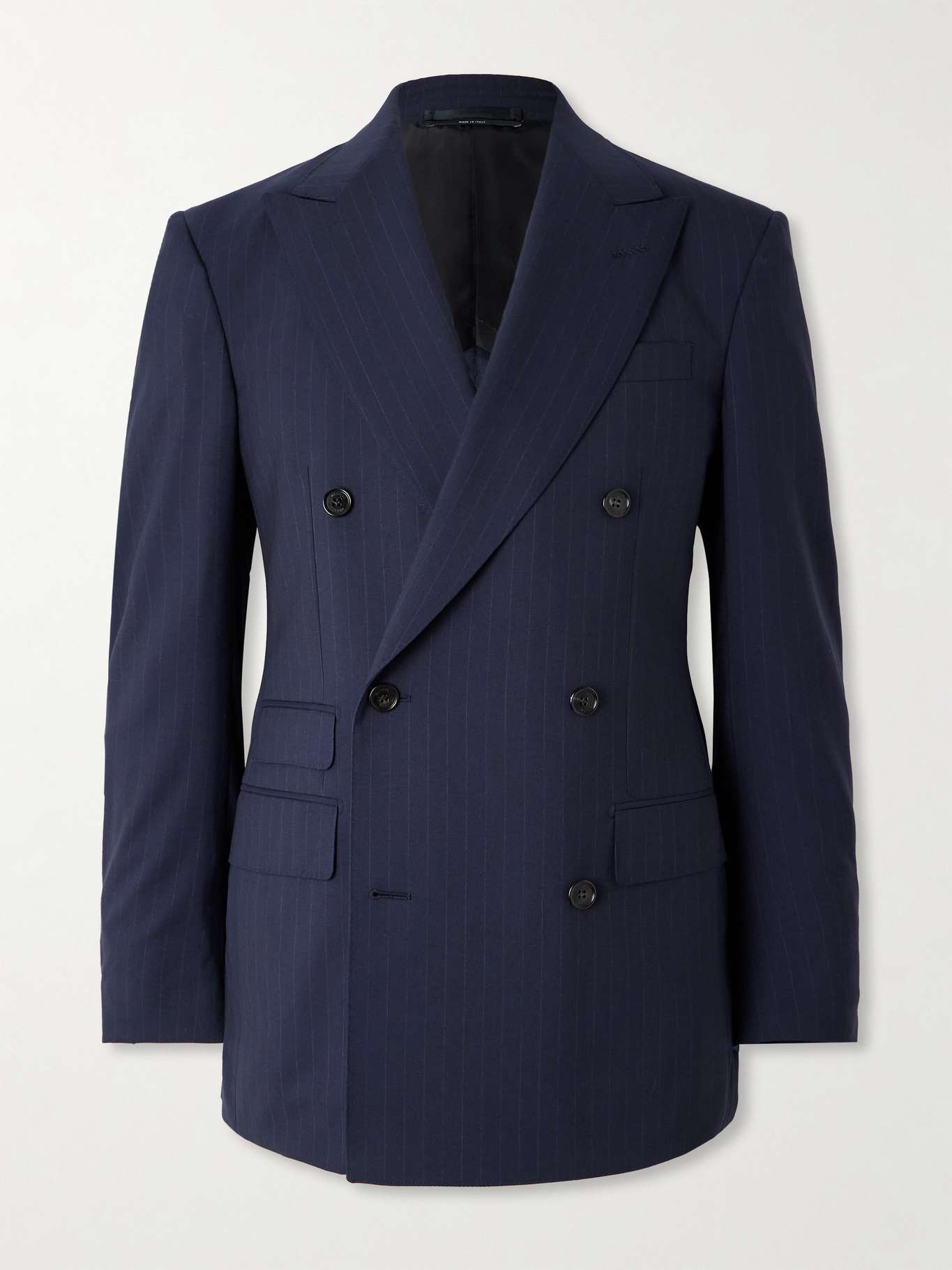 Dunhill has been a go-to for sharp suiting since the early 20th century. This jacket is cut from pinstriped wool and tailored in a double-breasted profile, with flap pockets, structured shoulders and peak lapels. It'll look great with black or beige trousers.