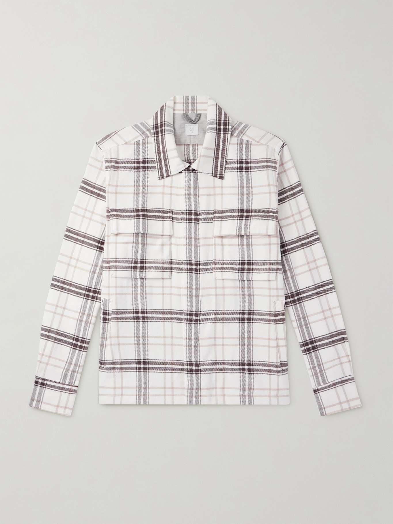 Eleventy's shirt is cut from breathable cotton and patterned with tonal-brown checks. It has a concealed placket and flap and welt pockets for a streamlined look.
