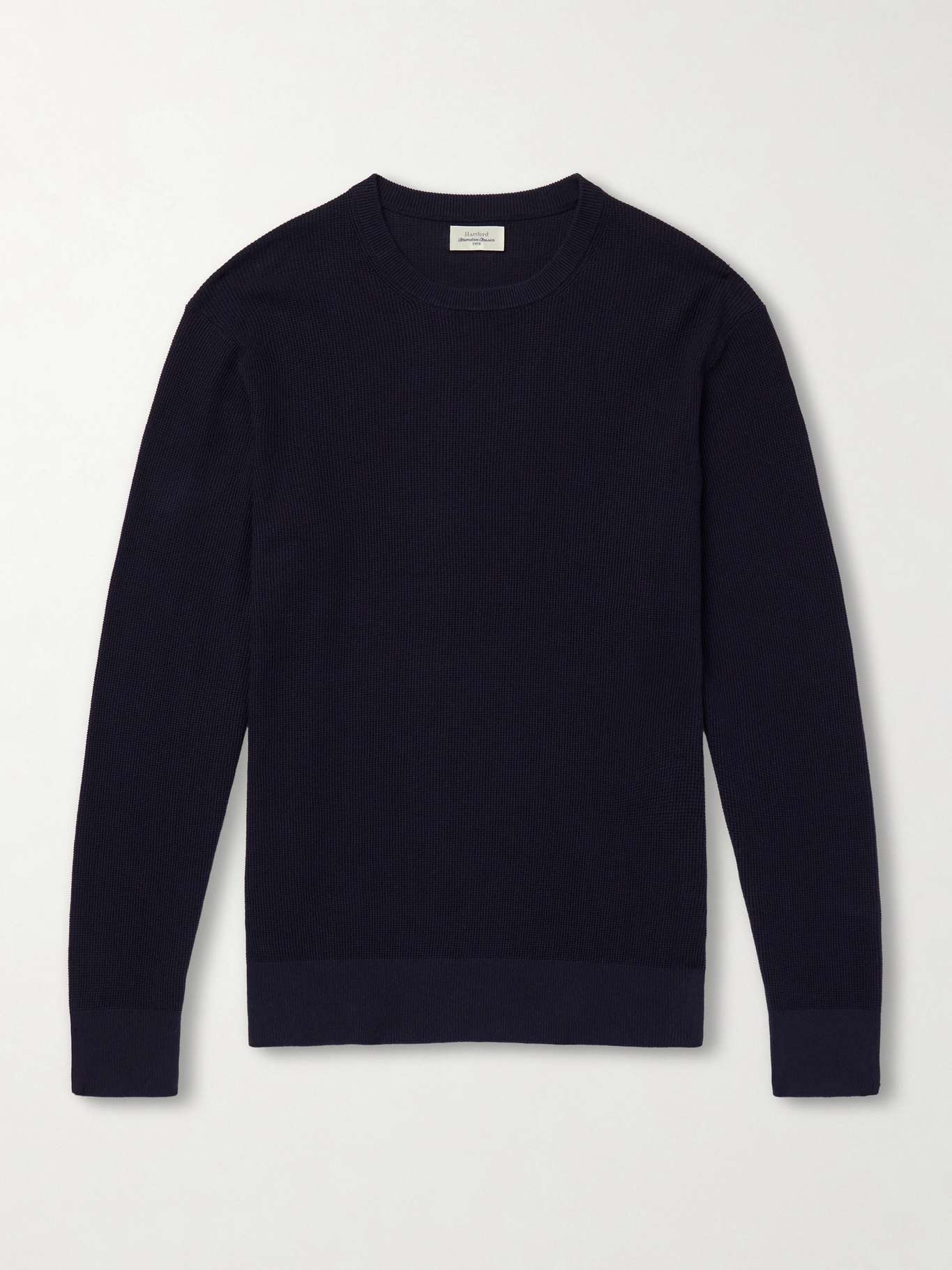 Hartford's knitwear reflects a classic approach to everyday dressing. This midnight-blue sweater is made from breathable cotton-piqué and has a ribbed crewneck, hem and sleeve cuffs. Pair yours with chinos.
