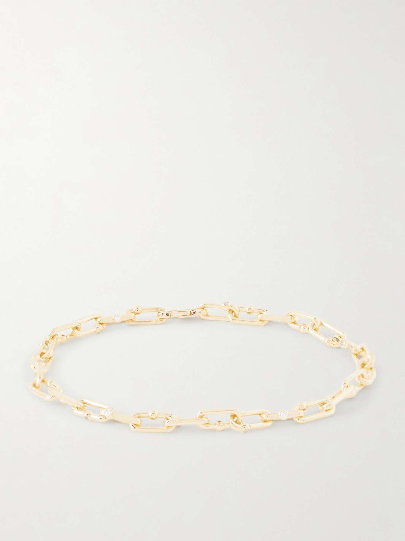 Hatton Labs' jewellery is designed at its studio in London. This 'Discovery' bracelet is made from links of gold-plated silver and set with cubic zirconia that'll pop beneath the cuff of a bomber or blouson.