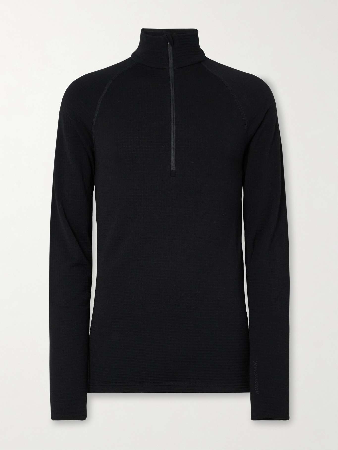 - Thumb holes lock in warmth, while the half-zip fastening allows for ventilation