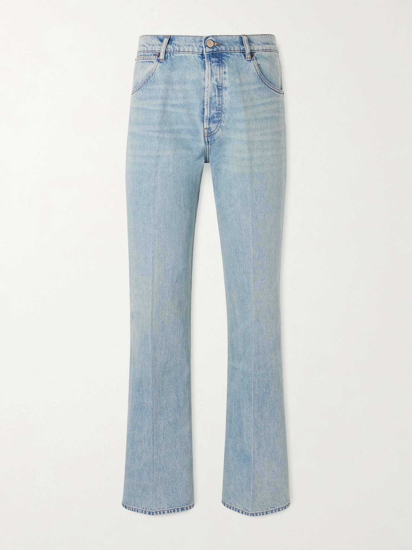 Husbands blends '70s-inspired tailoring with modern refinement. These jeans are cut from durable cotton denim with a high rise and flared legs, finished with pressed creases that sharpen the line while retaining a relaxed, retro-leaning silhouette.