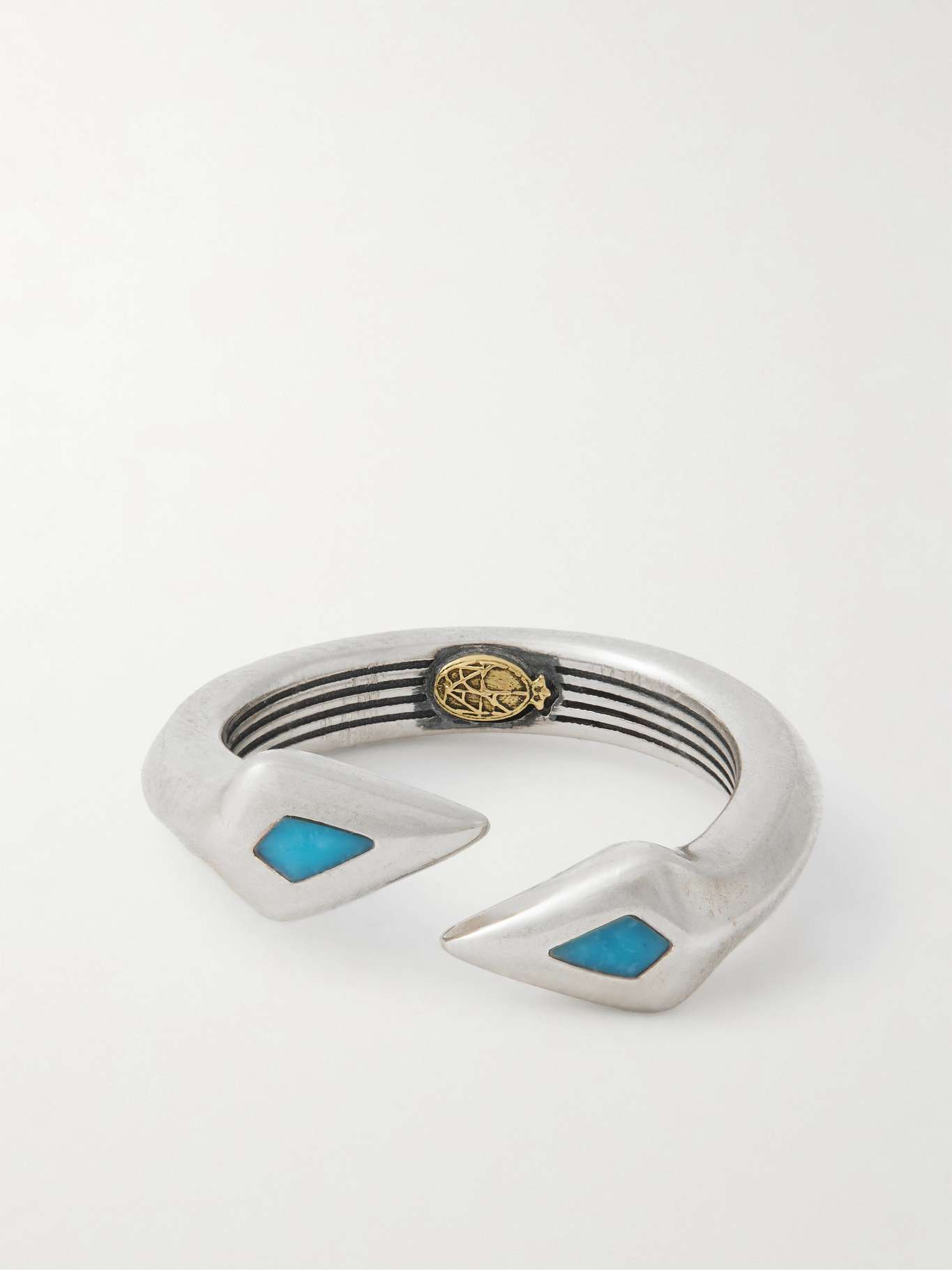 Jacques Marie Mage's 'Weston' ring from ‘The Last Frontier’ collection is inlaid with Kingman turquoise that's hand-cut to emphasise the double-arrowhead motif. It’s been handmade in LA from polished sterling silver and is limited to 100 pieces.