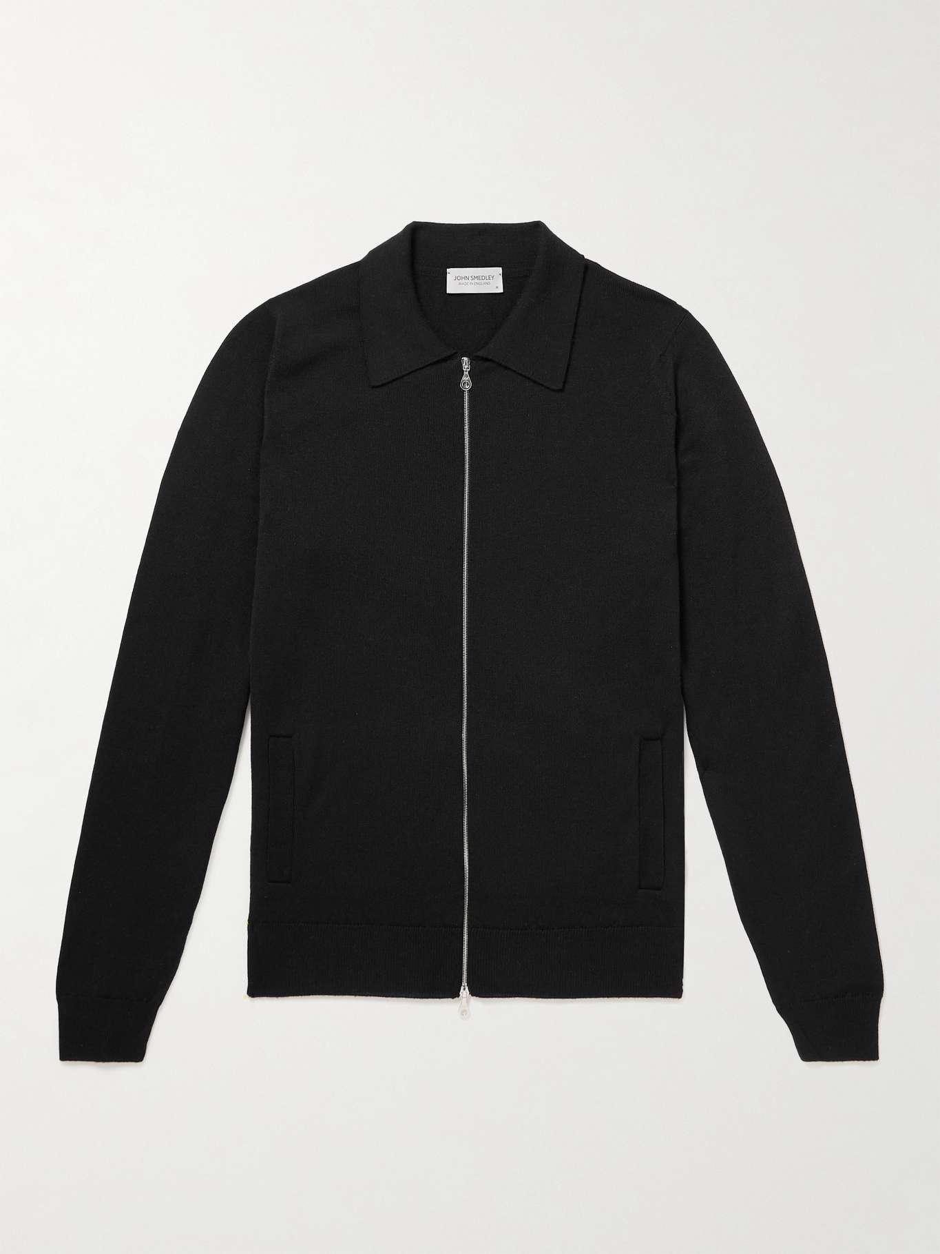 John Smedley favours merino wool, and it's easy to see why - the yarn is typically soft and long-lasting while boasting anti-bacterial and anti-creasing properties. This cardigan is knitted with a classic collar and zips through the front.