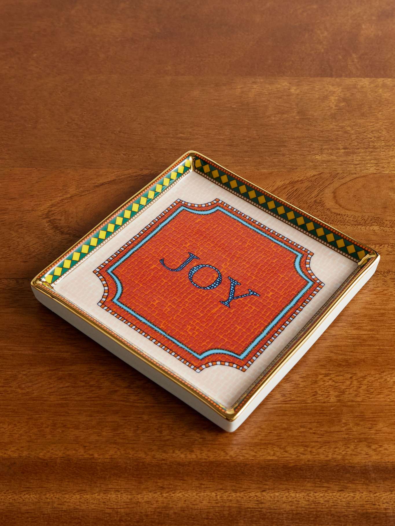 La DoubleJ's tray encapsulates its mission statement – to "wrap the world in joy". Printed with the word at its centre, it's been made in Italy from porcelain that's painted with tiles and geometrics and is sized to fit your watch and keys.