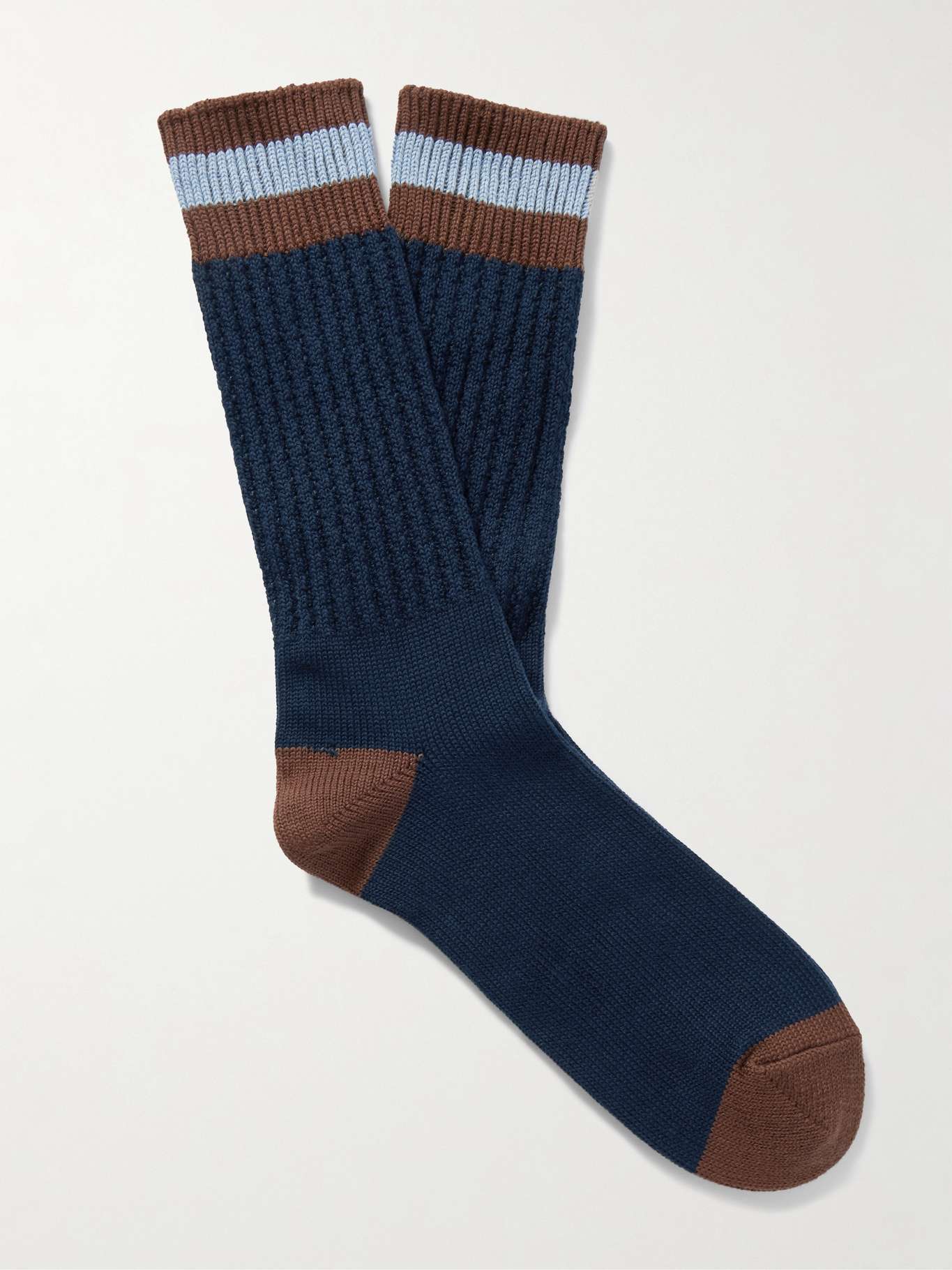 MR P. Striped Ribbed Cotton-Blend Socks