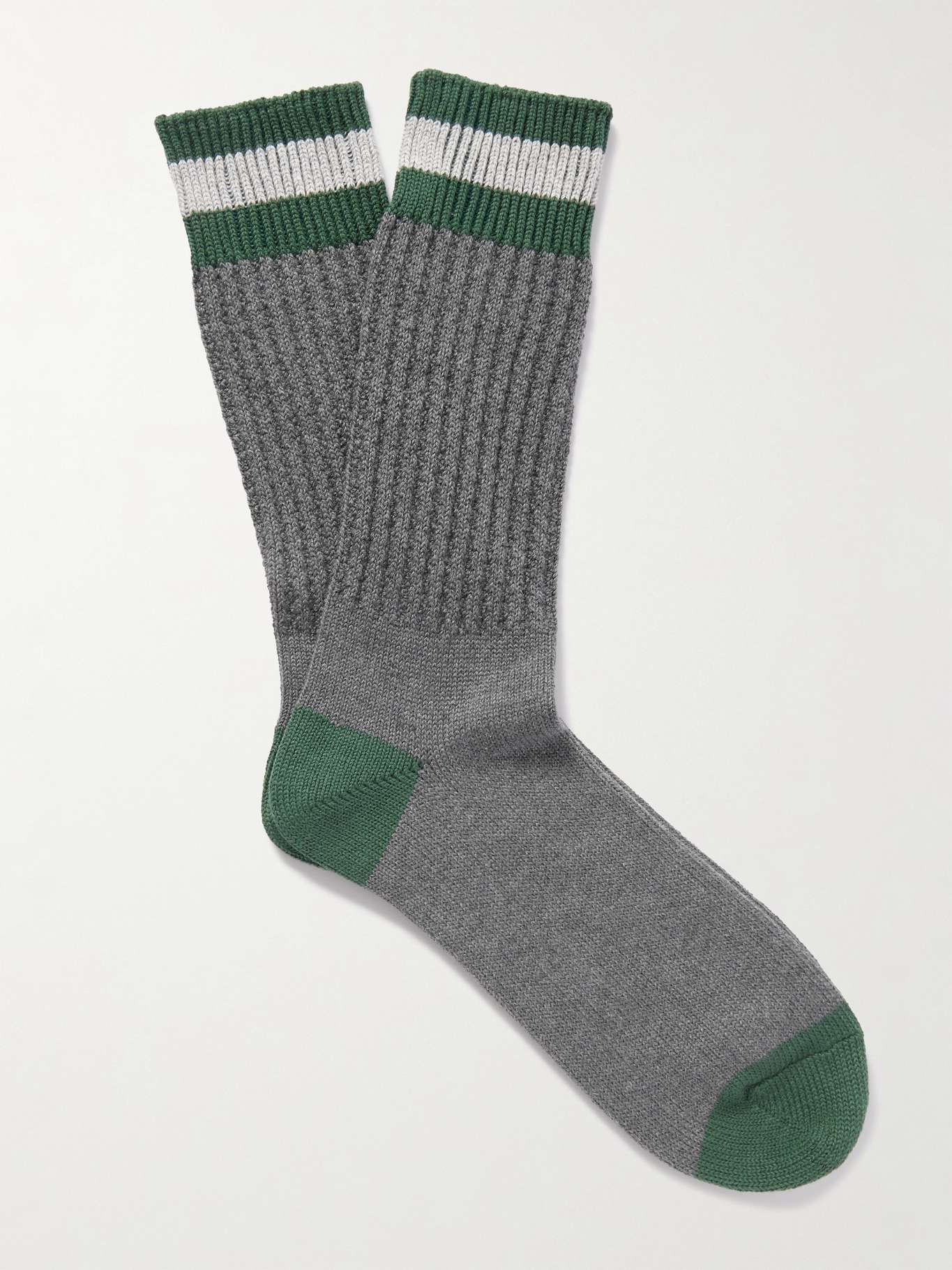 MR P. Striped Ribbed Cotton-Blend Socks