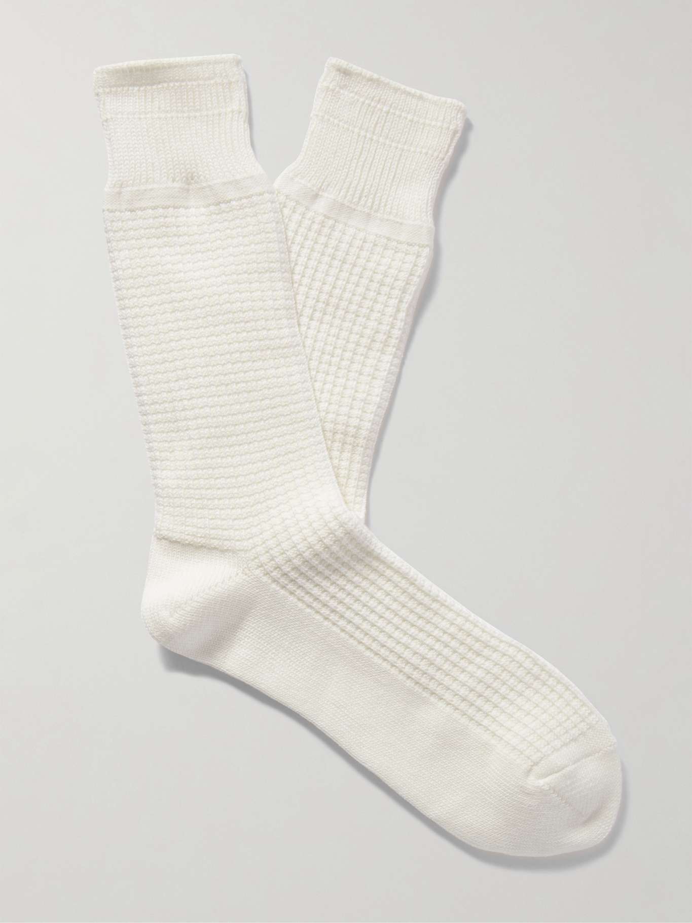 DESIGNED BY MR PORTER.The team behind Mr P.'s collections knows that well-edited wardrobes are rooted in good essentials. These socks are waffle-knitted from soft cotton-blend for a rich texture. Ribbed cuffs make sure they stay firmly in place.