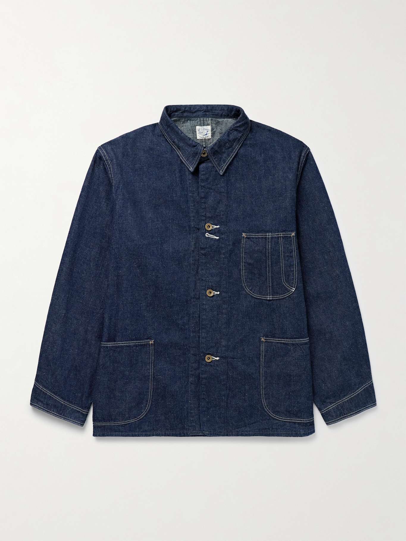 OrSlow's '1940s' jacket is inspired by workwear from nearly a century ago. It's been made in Japan from dark-blue denim, outlined with contrasting topstitching and fitted with a trio of curved patch pockets.