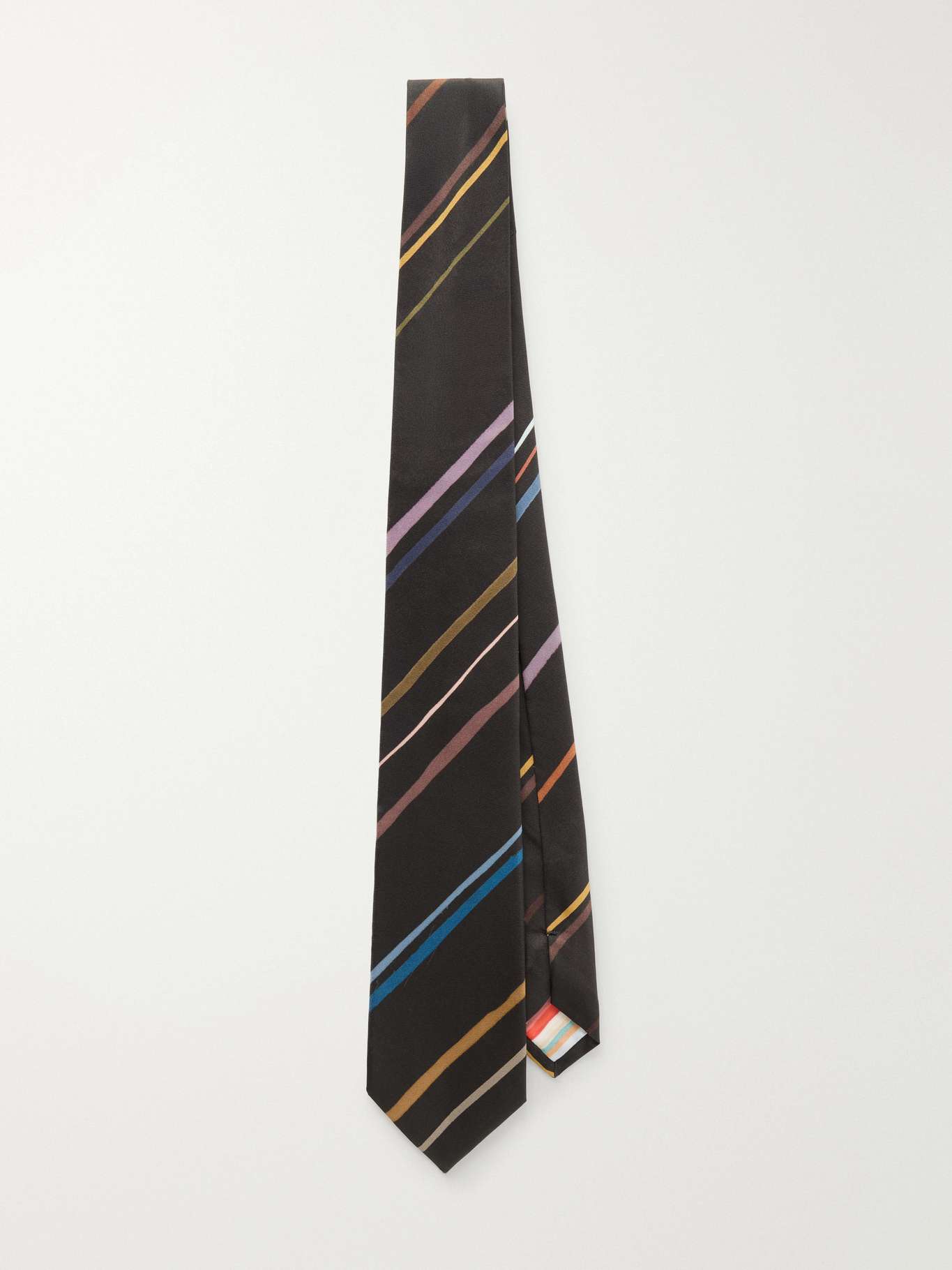 Paul Smith’s tie is crafted from lustrous silk in an 8 cm blade. Diagonal multicoloured stripes add subtle depth and visual interest to this classic accessory.