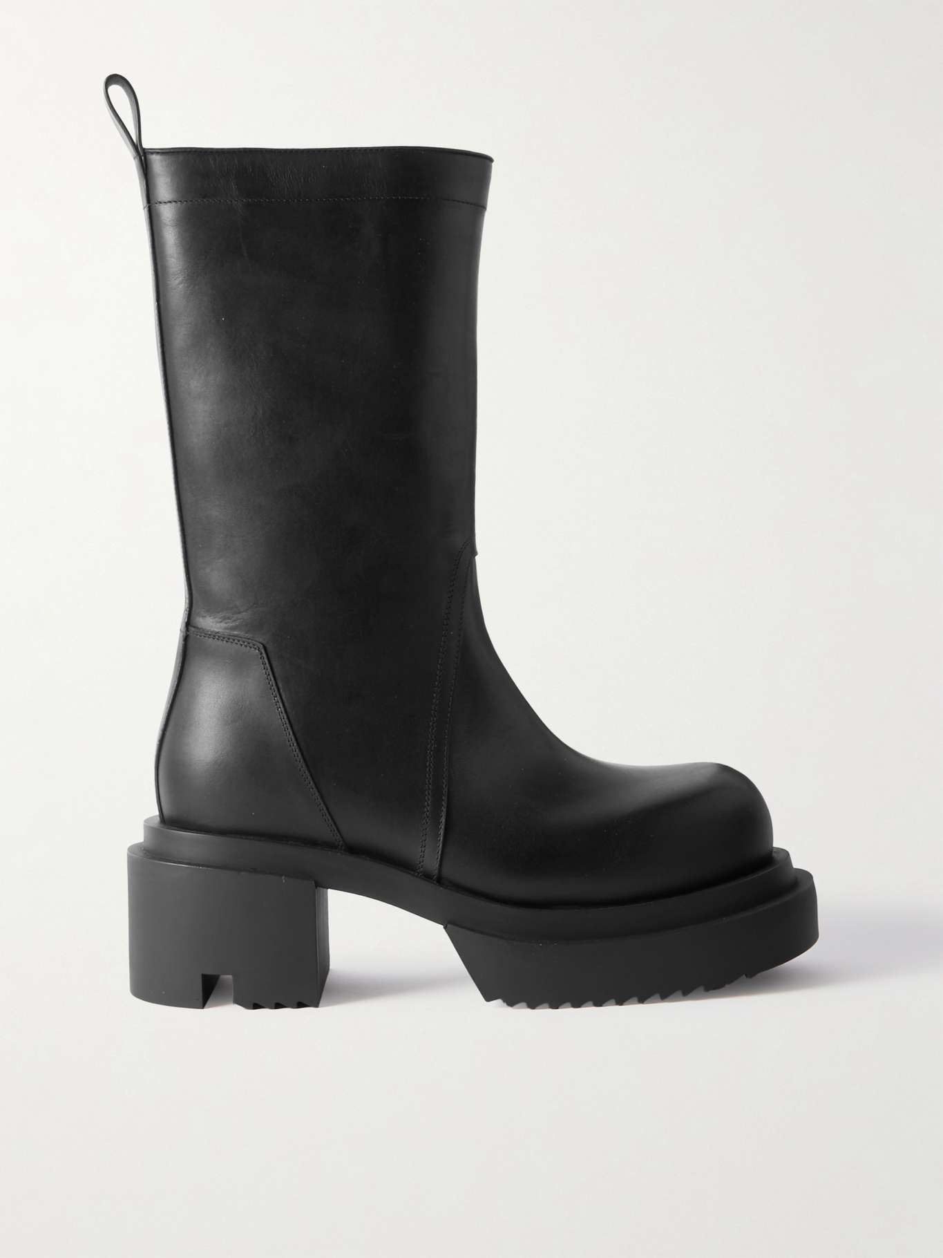 Rick Owens' boots have thick, stacked platforms that give them a bit of extra height. Made in Italy from black leather, they have signature 'shark-tooth' rubber soles and pull tabs for easy on and off. Wear them with the label's wide-leg trousers or shorts.