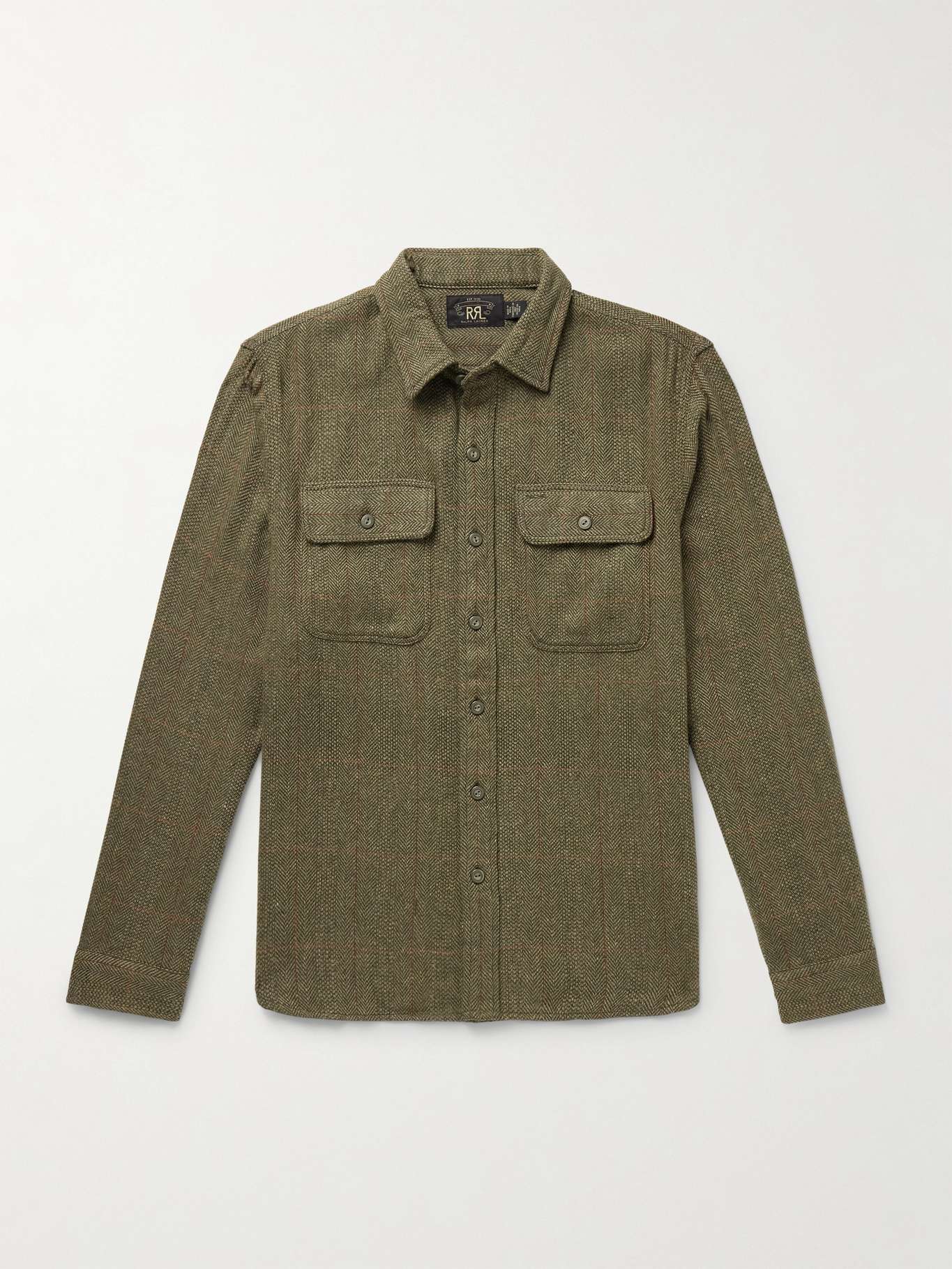 RRL's 'Grayson' shirt is modelled on classic workwear. Designed with a subtle checked pattern and herringbone weave, it's topped with chest flap pockets and reinforced with suede patches at the elbows.
