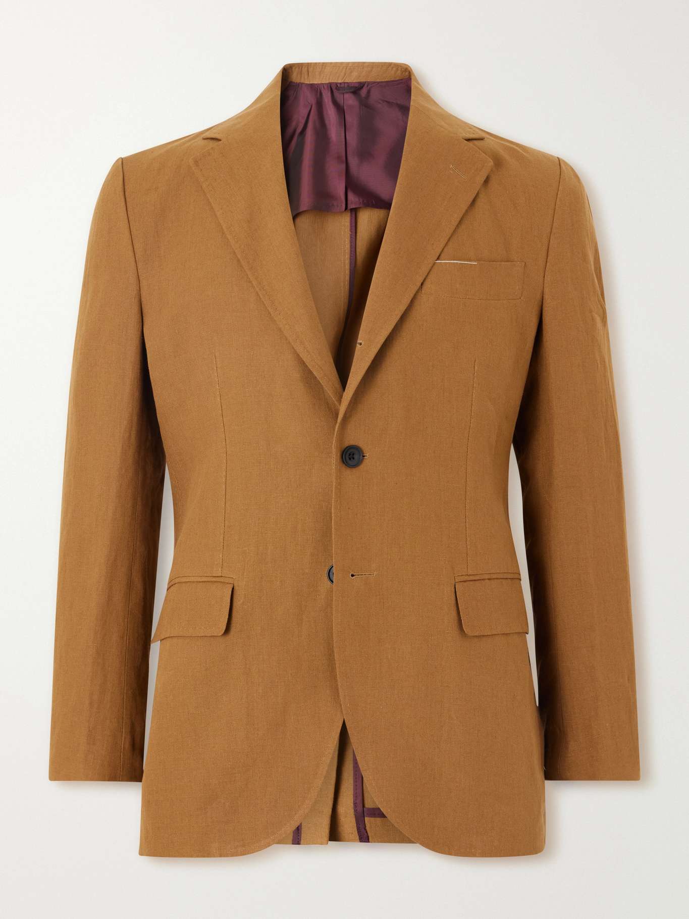 Rubinacci approaches tailoring with a relaxed Neapolitan sensibility. This single-breasted jacket is tailored from lightweight linen in a softly darted fit, with notch lapels and flap pockets for a refined yet easygoing silhouette.