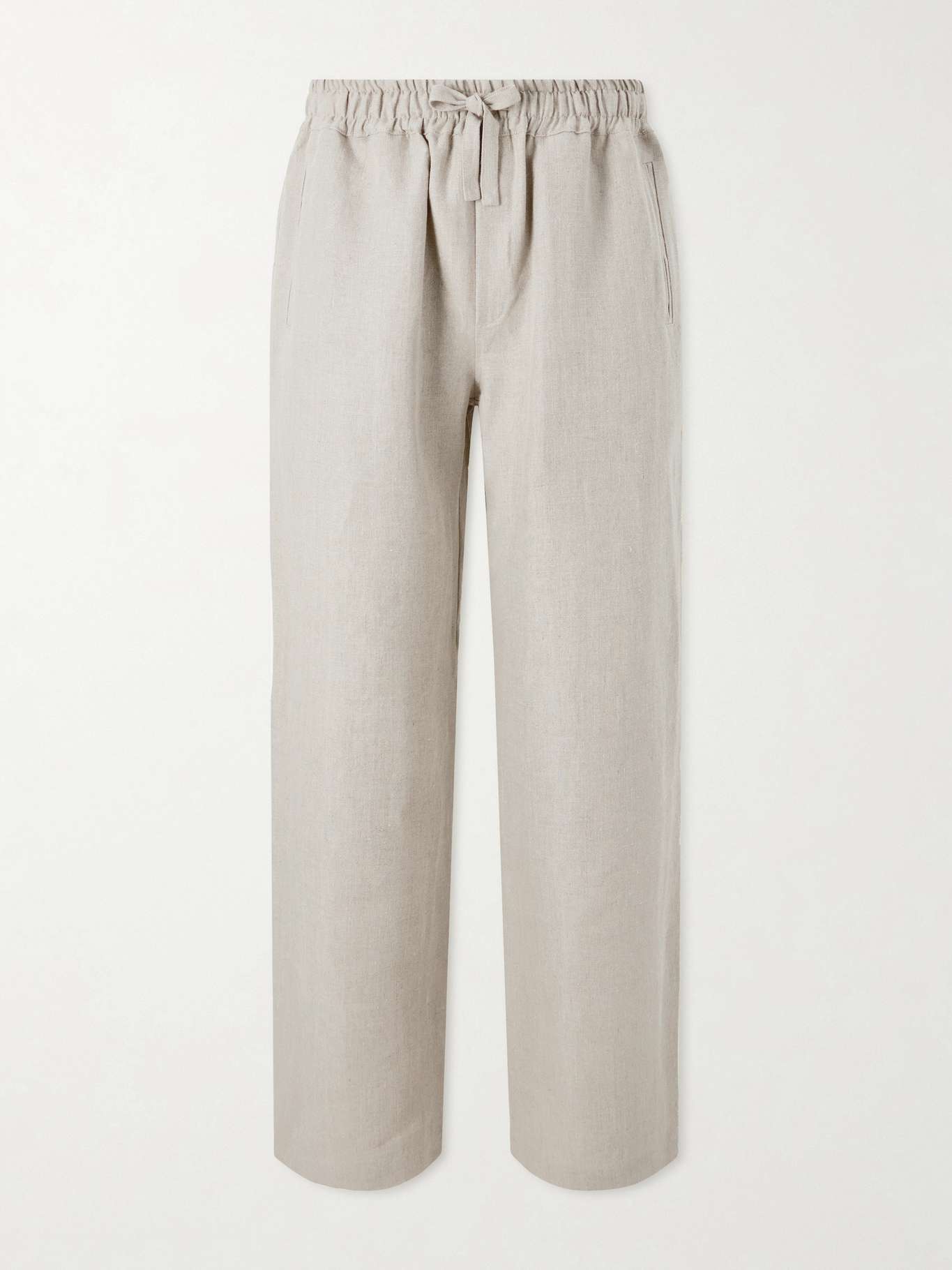 Known for its uncompromising approach to bespoke tailoring, Saman Amel applies the same level of precision to ready-to-wear. These trousers are cut from linen in a straight-leg silhouette with a relaxed drape, featuring an elasticated waistband with drawstring for ease while maintaining a clean, tailored line.