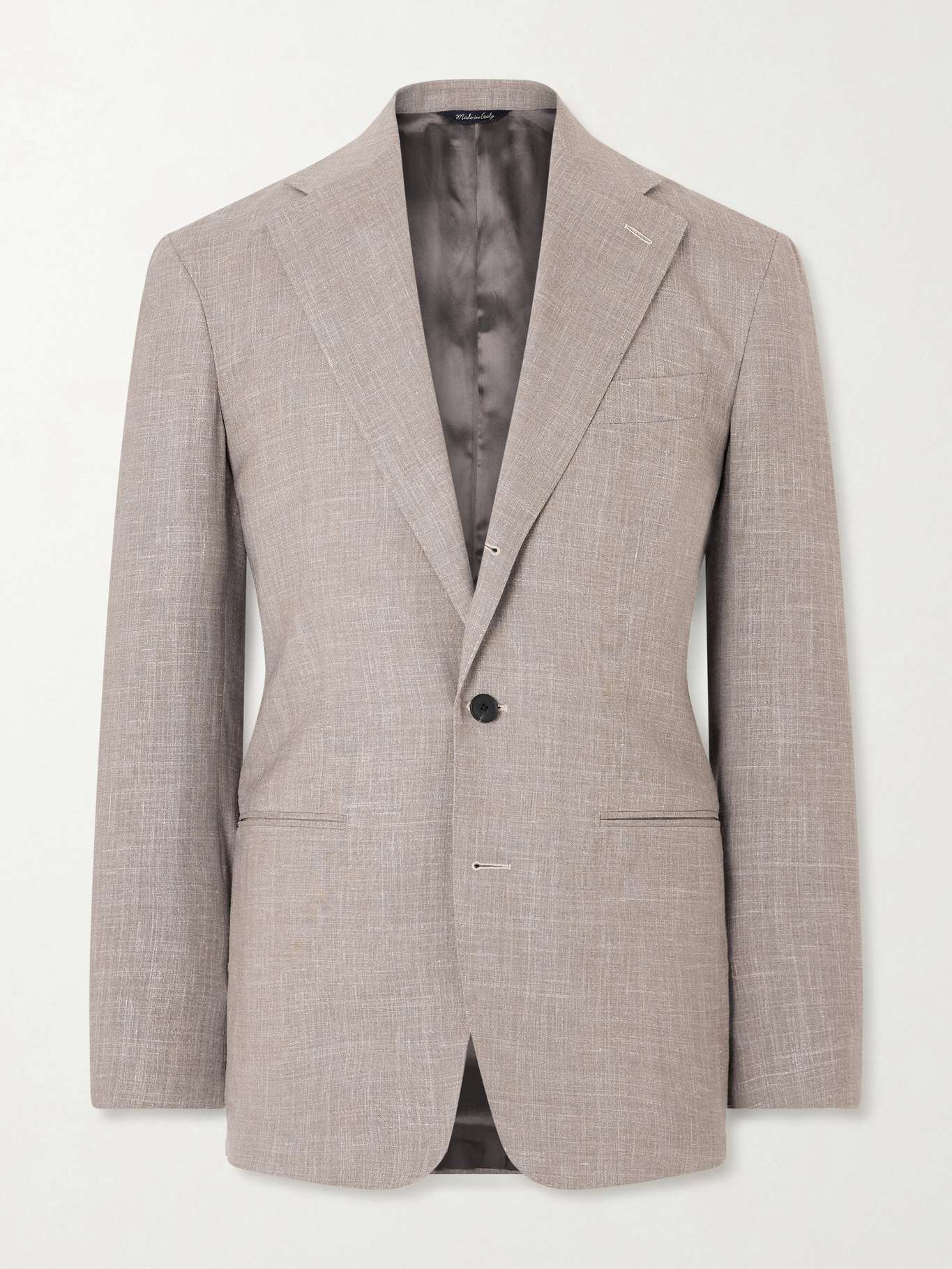 SAMAN AMEL Slim-Fit Basketweave Wool, Silk and Linen-Blend Blazer
