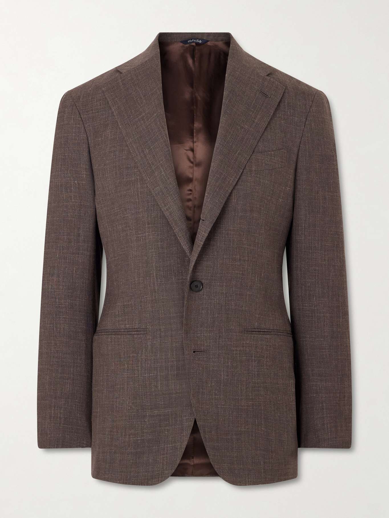 SAMAN AMEL Slim-Fit Wool, Silk and Linen-Blend Suit Jacket