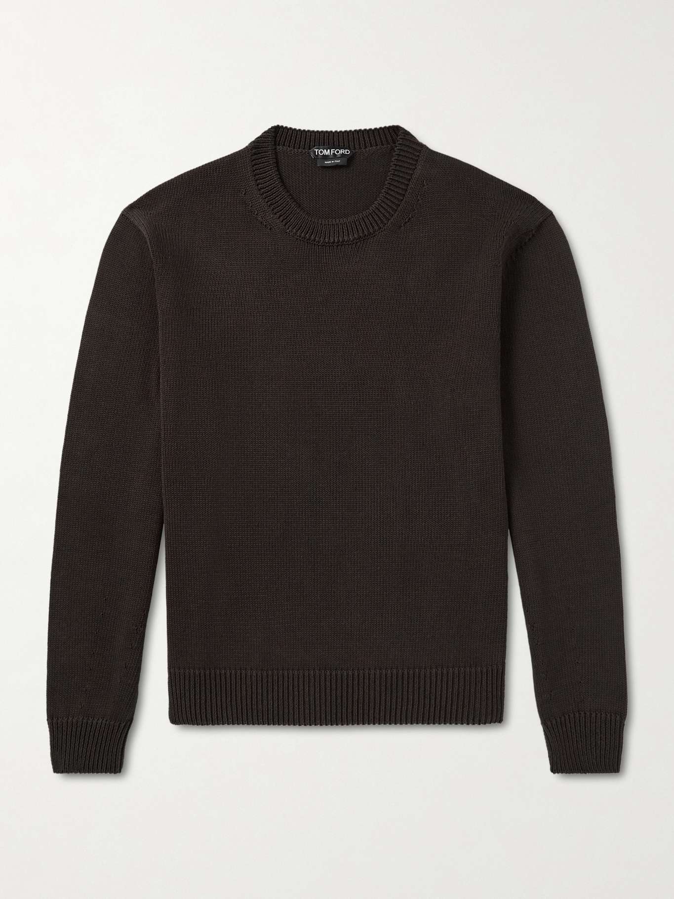 TOM FORD's sweater is a timeless staple, made in Italy from a luxurious blend of cotton and silk. It's knitted for a lightweight handle and has a classic ribbed crewneck that's easily layered over shirts.