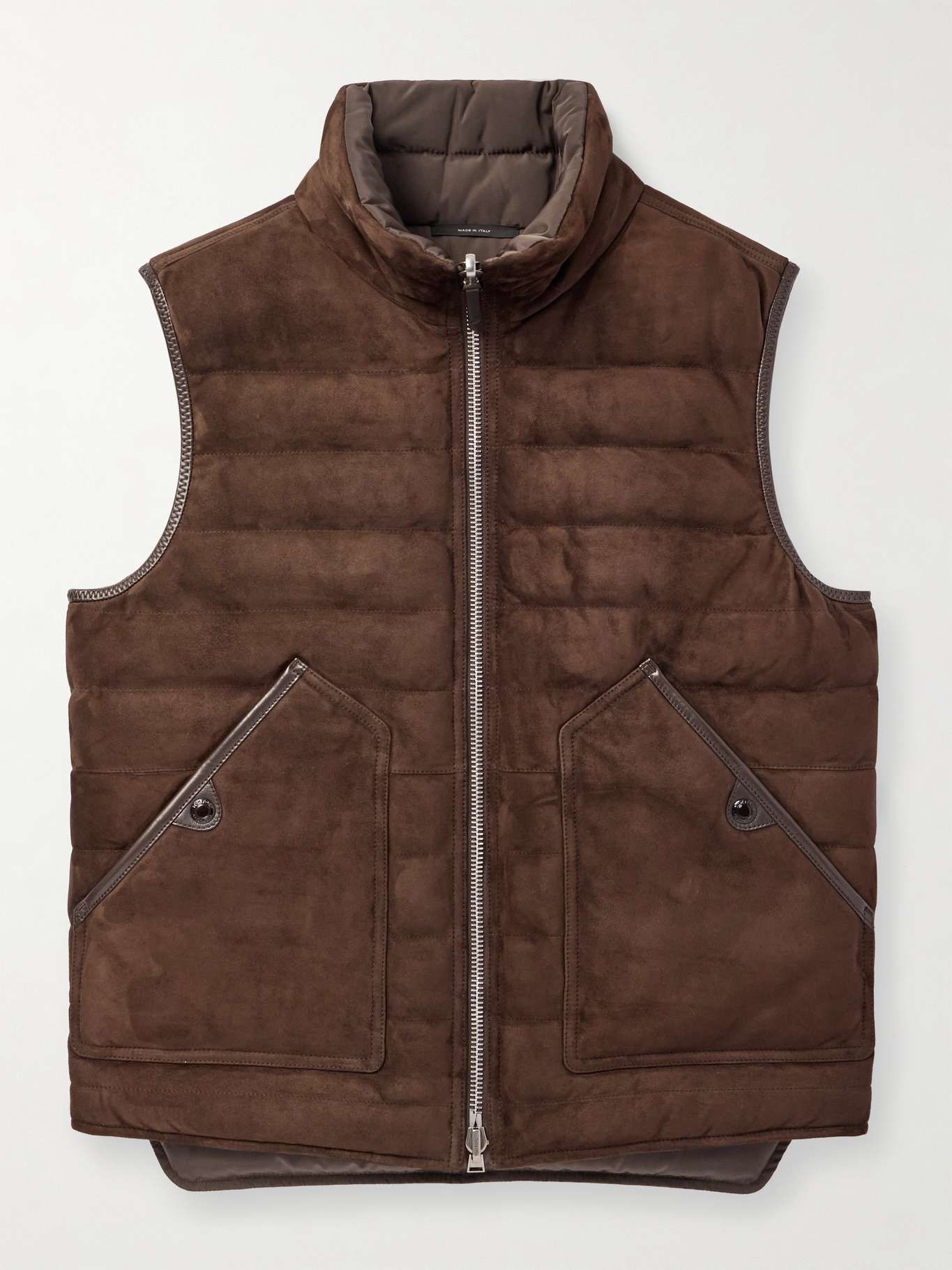 TOM FORD's gilet is smart and sophisticated, whether you wear it with the suede or shell side facing out. Trimmed with durable leather, it's been made in Italy and quilted to keep the insulating down evenly distributed.
