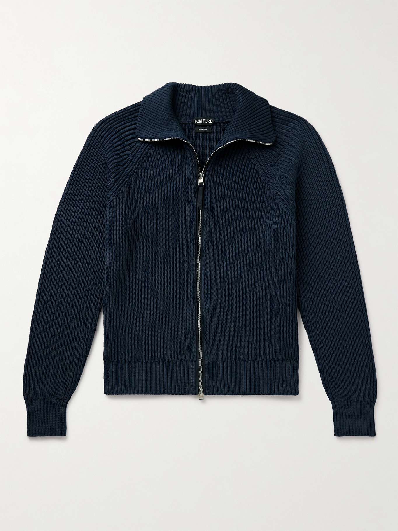 TOM FORD Slim-Fit Ribbed Silk and Cotton-Blend Zip-Up Cardigan