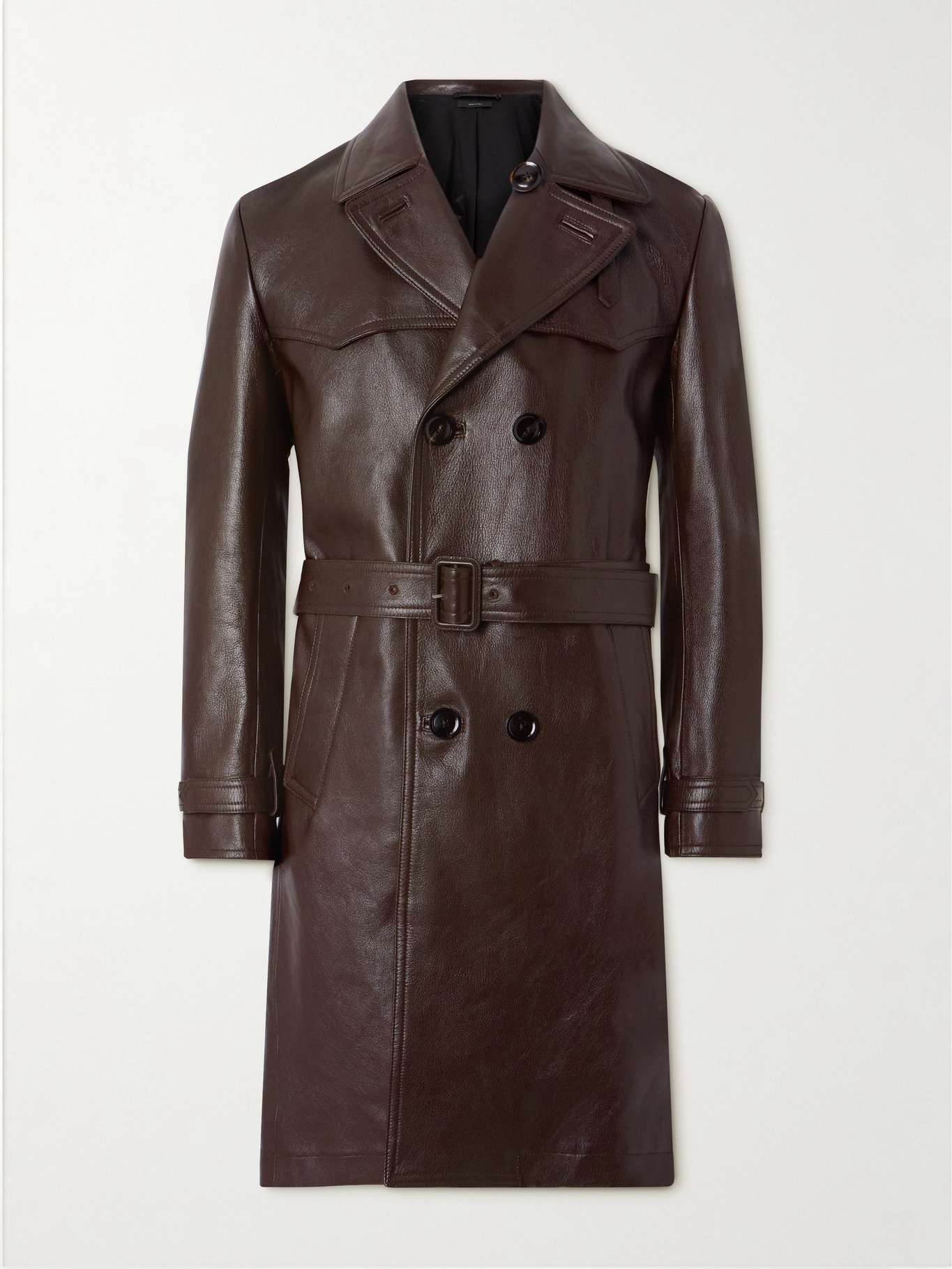 TOM FORD's double-breasted trench coat is a worthwhile investment that will only get better with time. Crafted in Italy from supple leather, it's fully lined for smooth layering and has all the traditional details you'd expect, including a throat latch, belted cuffs and wide lapels.
