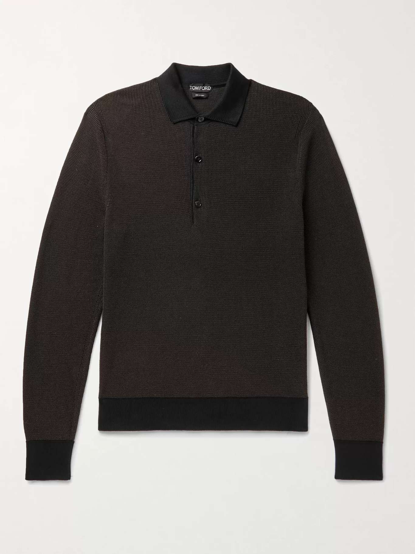 TOM FORD's long-sleeved polo shirt is casual without sacrificing any smartness. It's been spun in Italy from cotton and silk-blend for a slim fit and fastens with a placket of horn buttons.