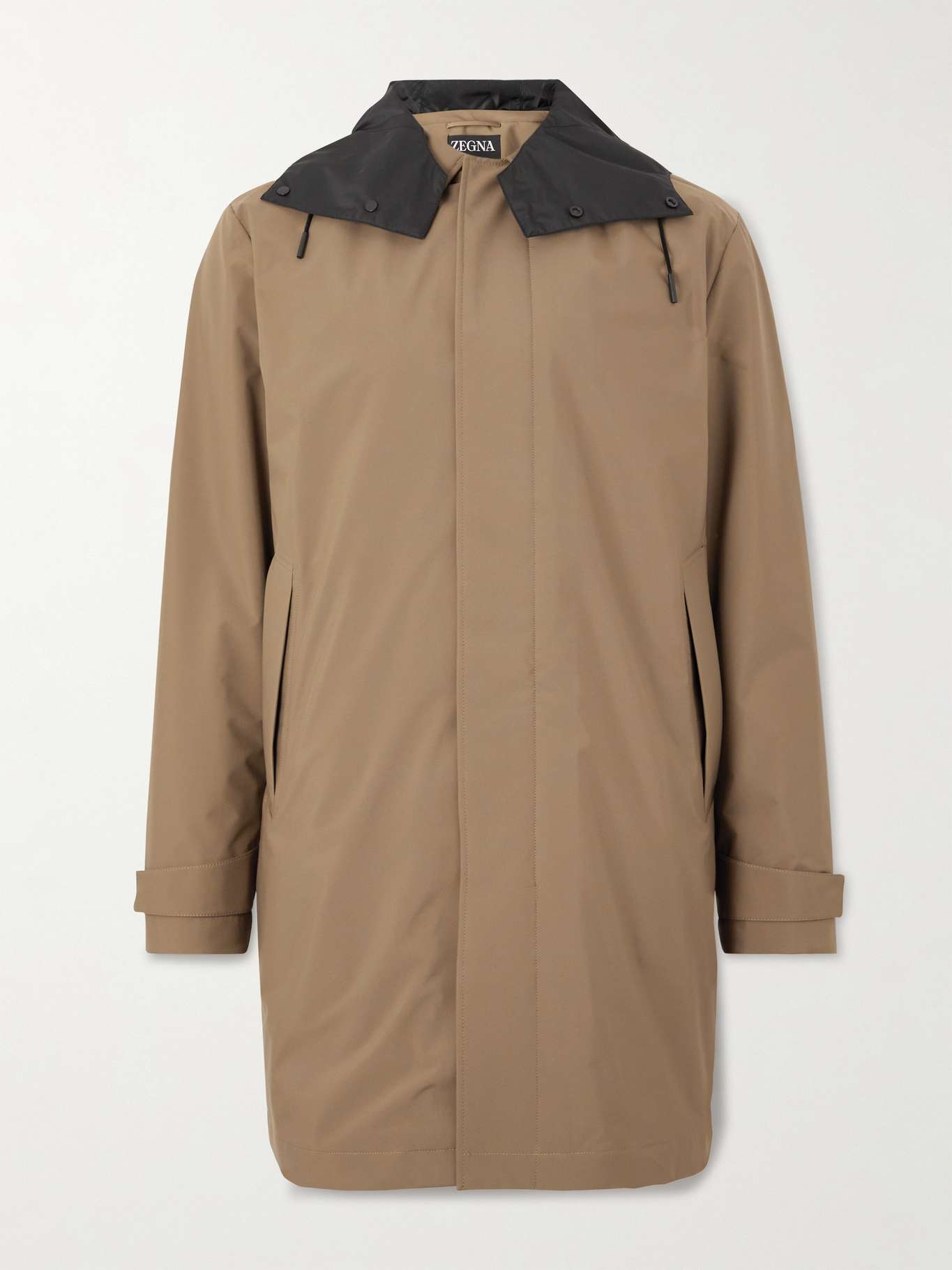 ZEGNA's 'Stratos' jacket is made from lightweight technical shell with a water-repellent finish. It has a detachable hood and a concealed placket along the front. Leather trims highlight the brand's attention to detail, while the neutral tan shade ensures you'll wear it on repeat.