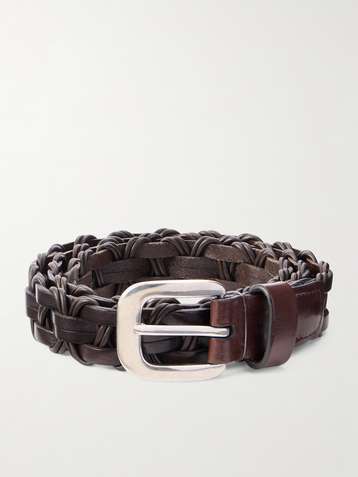 3.5cm Leather-Trimmed Woven Elastic Belt