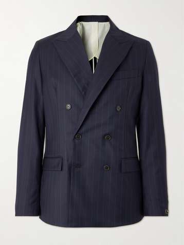 Double-Breasted Pinstriped Virgin Wool Blazer
