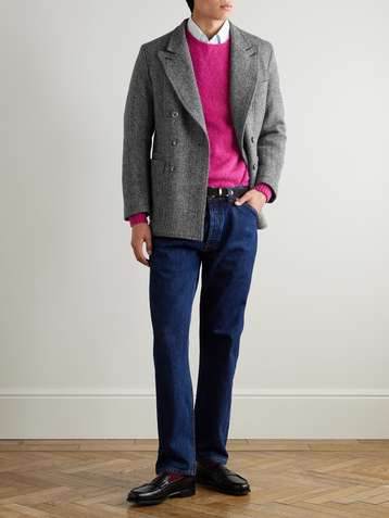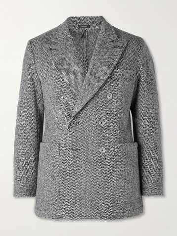 + HIM Games Double-Breasted Herringbone Wool-Tweed Blazer