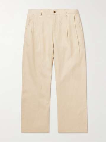 Kay 1454 Straight-Leg Pleated Linen Trousers
