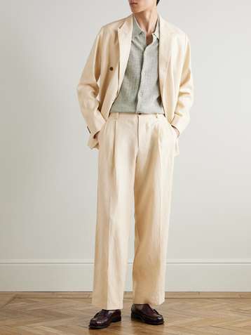 Slim-Fit Straight-Leg Linen and Cotton-Blend Trousers