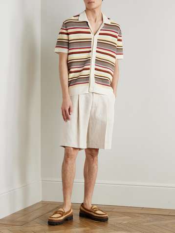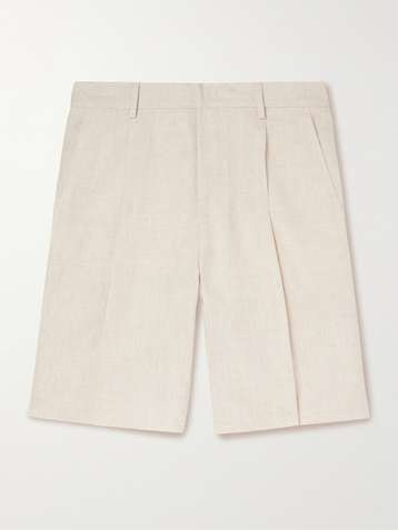 Kay 1454 Straight-Leg Pleated Linen Shorts