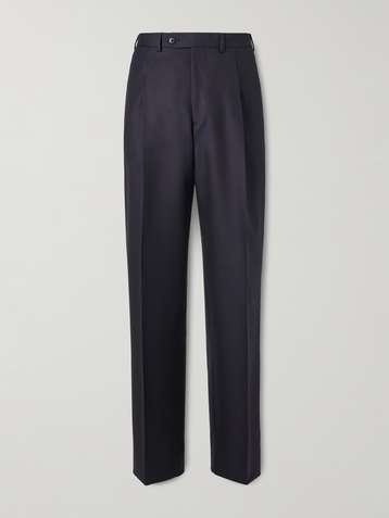 Straight-Leg Pleated Pinstriped Merino Wool Trousers