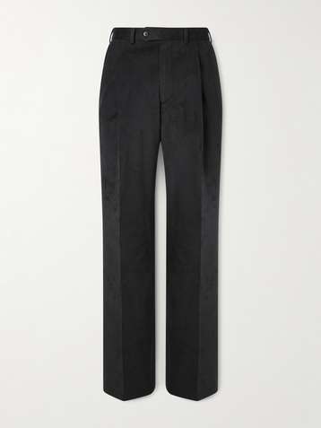 Straight-Leg Pleated Peached Cotton-Blend Trousers