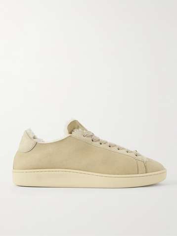 Shearling-Lined Suede-Trimmed Leather Sneakers