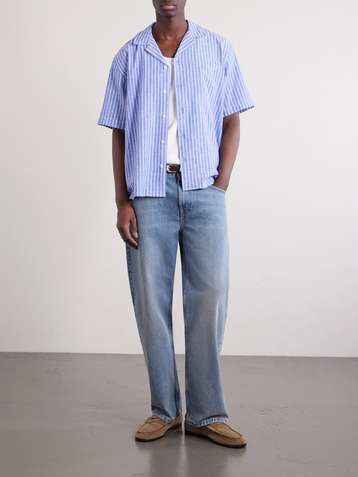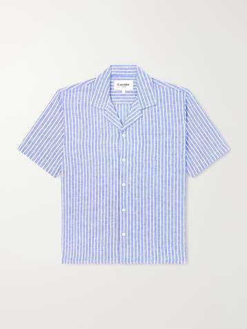 Camp-Collar Striped Linen and Cotton-Blend Shirt