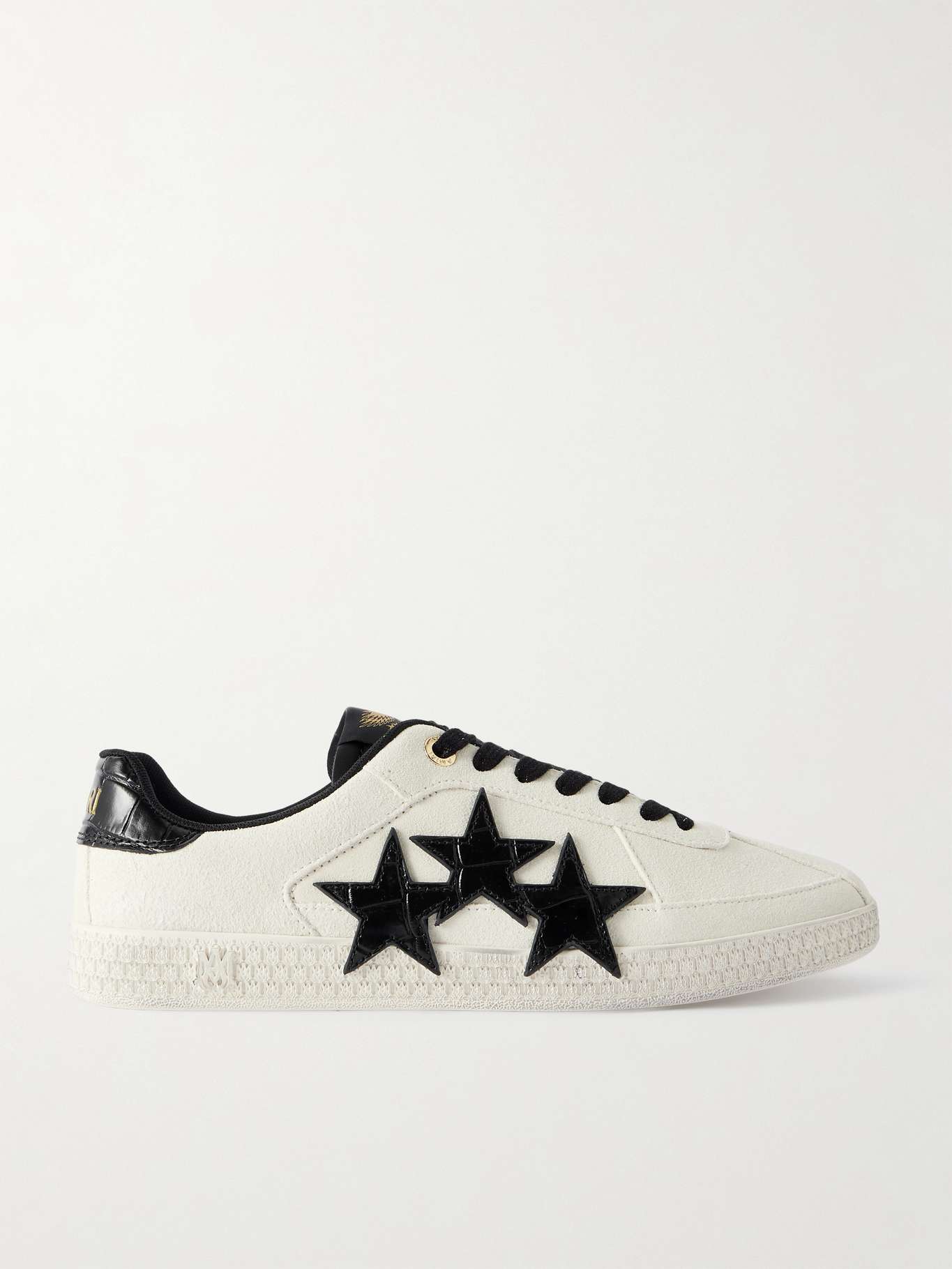 Rooted in a rock 'n' roll attitude, AMIRI's sneakers are designed to make heads turn. They're crafted from supple leather, rest on cushioned rubber soles and finished with glossy, hand-cut, croc-effect leather appliqués along the sidewalls. Padded collars put emphasis on comfort.