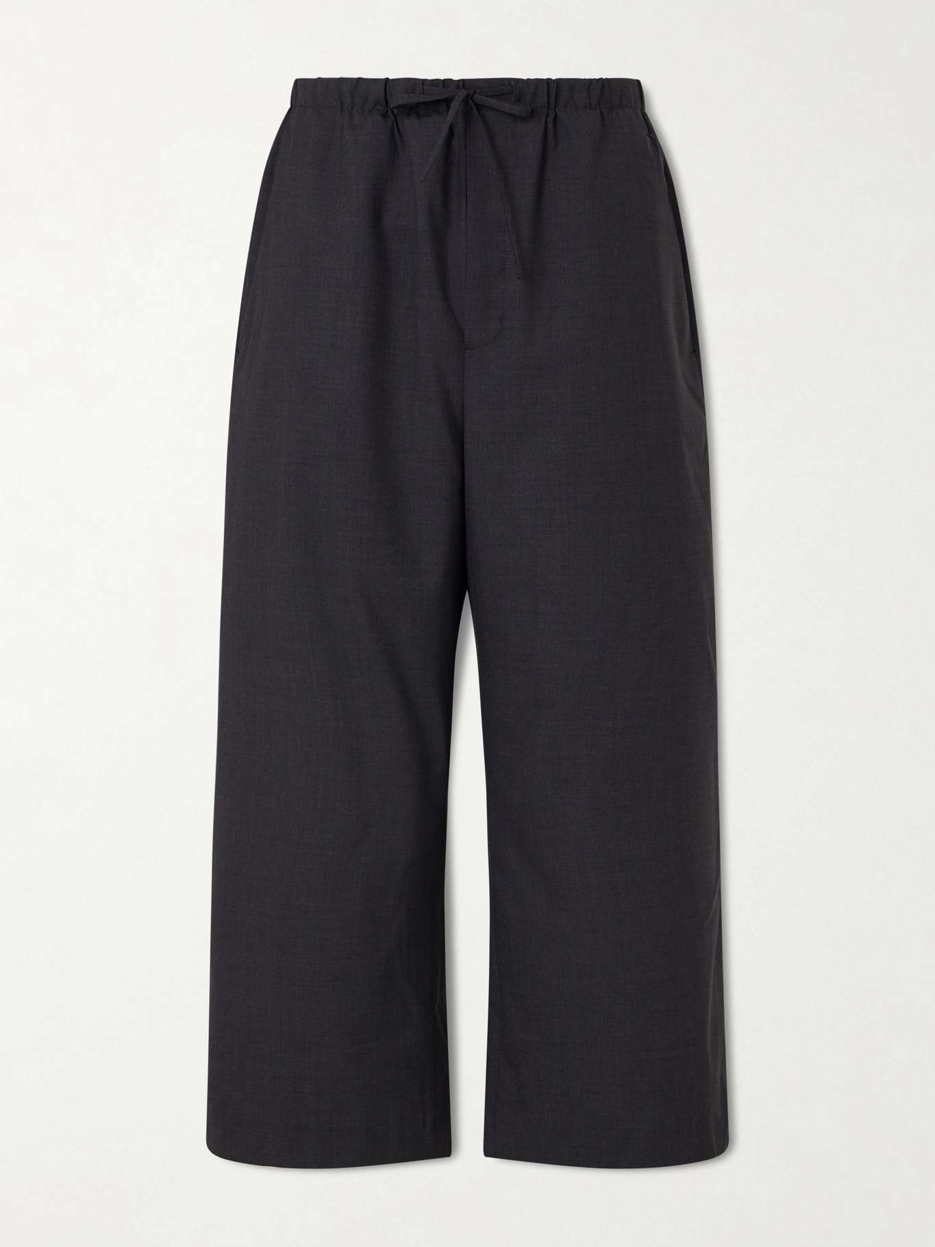 Amomento’s trousers explore relaxed proportions that feel casual yet considered. Made from lightweight wool, they’re cut to a slightly cropped length with an easy silhouette, the fluid fabric keeping the shape laid-back while maintaining a clean, composed line.
