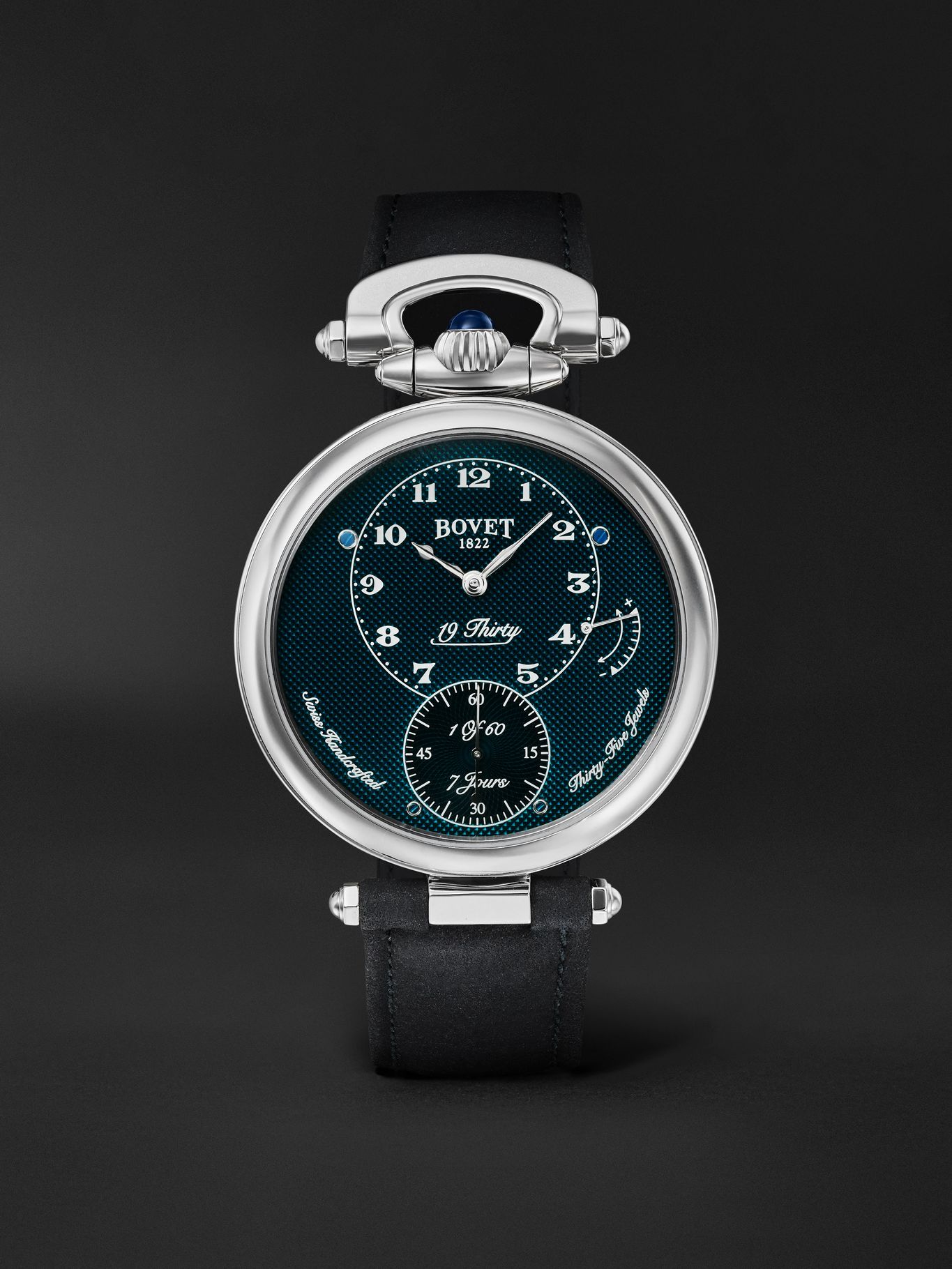Bovet has a long, rich history in horology, with its very first timepiece dating to as early as 1818. Modelled on a design from the '30s, this '19Thirty' watch is handcrafted from polished stainless steel and has an exquisite guilloché dial in a dark 'Clous de Paris' shade. It’s one of only 60 in the world.