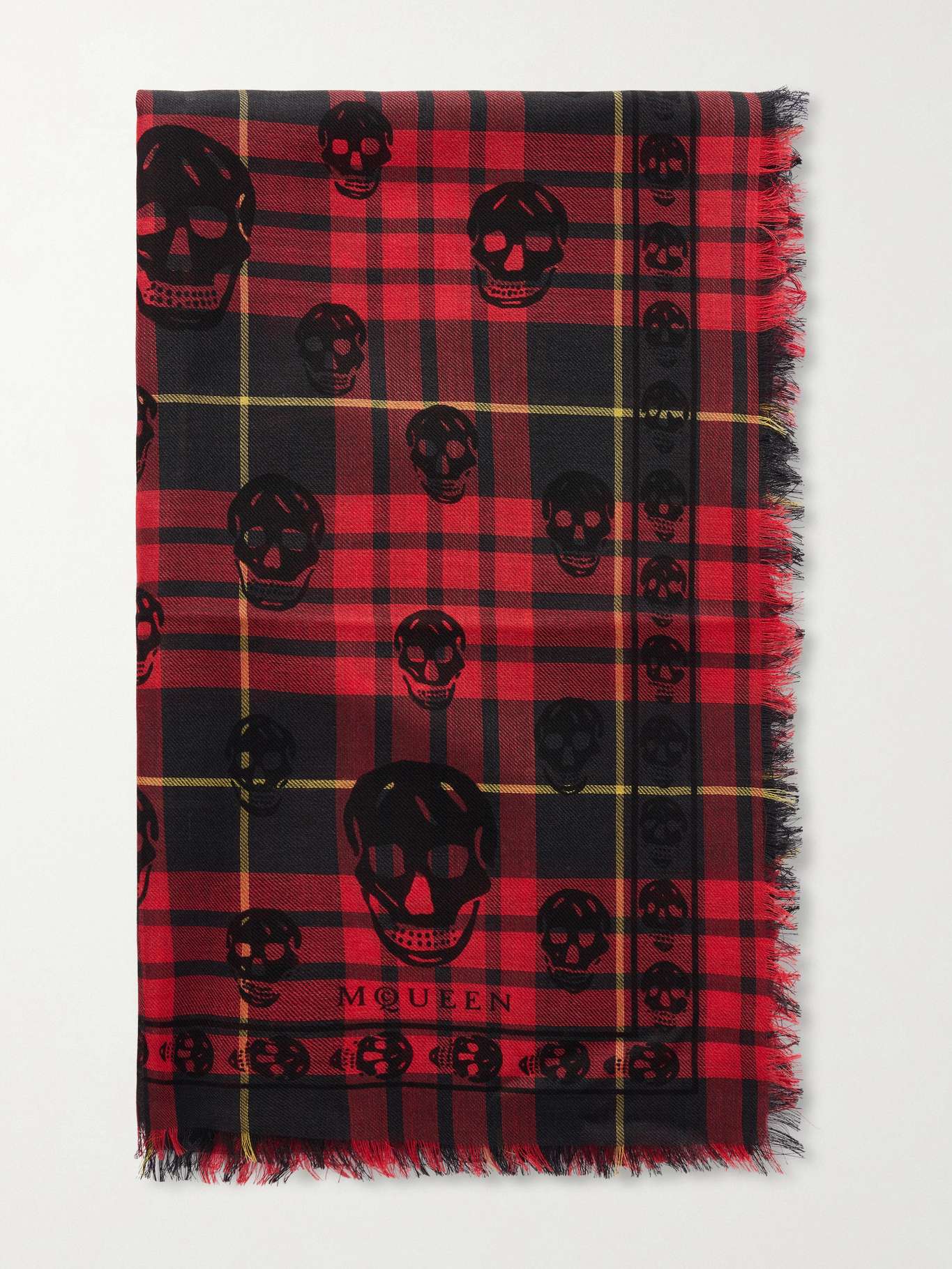 MCQUEEN Fringed Checked Wool and Silk-Blend Scarf