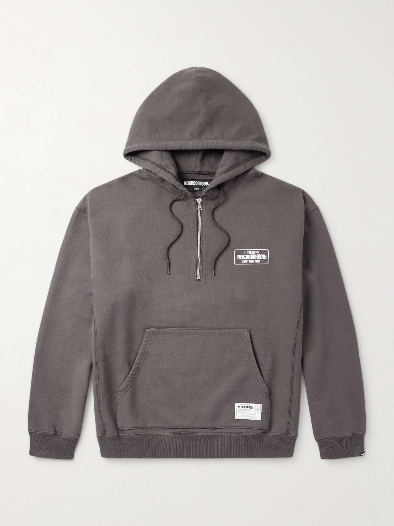 NEIGHBORHOOD Logo-Print Cotton-Jersey Half-Zip Hoodie