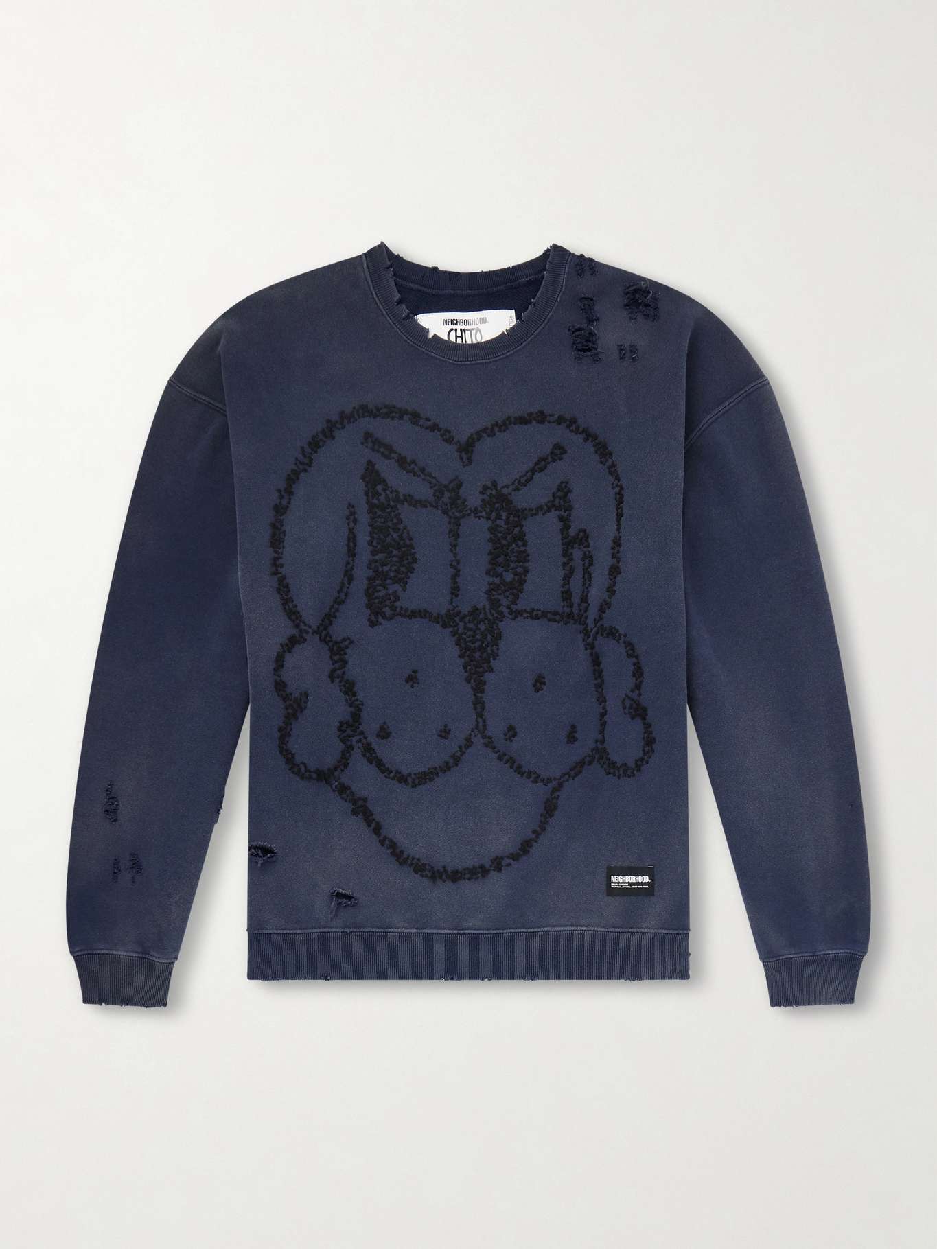 NEIGHBORHOOD + Chito Savage Distressed Embroidered Cotton-Jersey Sweatshirt