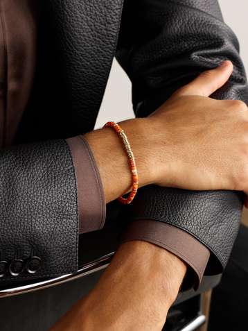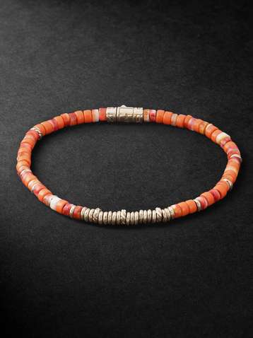Heishi 14-Karat Gold, Sterling Silver and Shell Beaded Bracelet