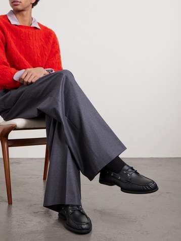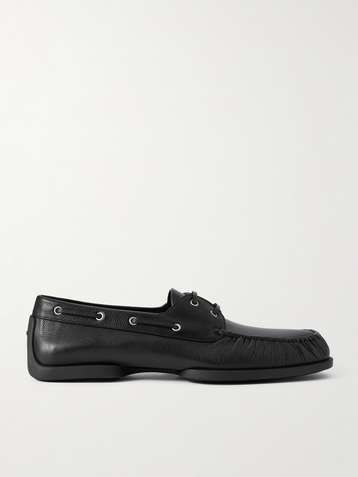 Hex Eye Pebble-Grain Leather Boat Shoes