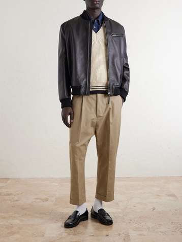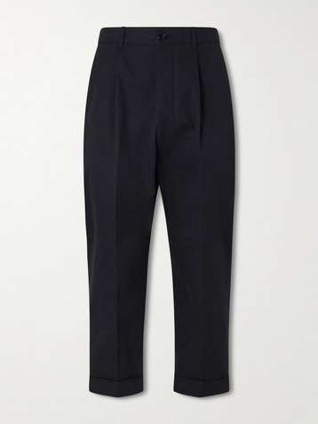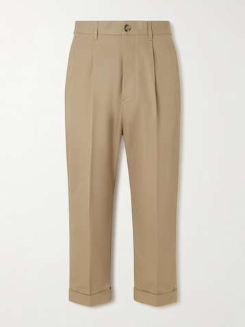 Carrot Cropped Tapered Pleated Cotton-Gabardine Trousers